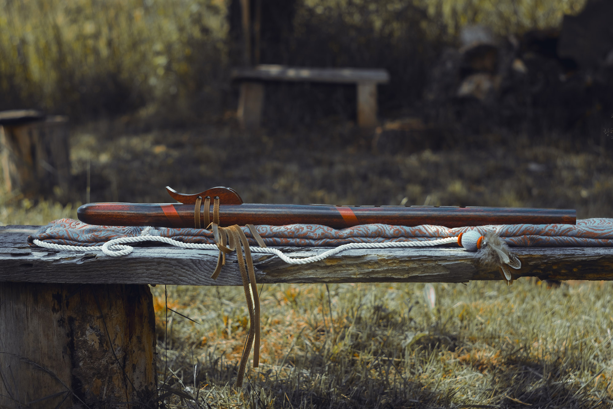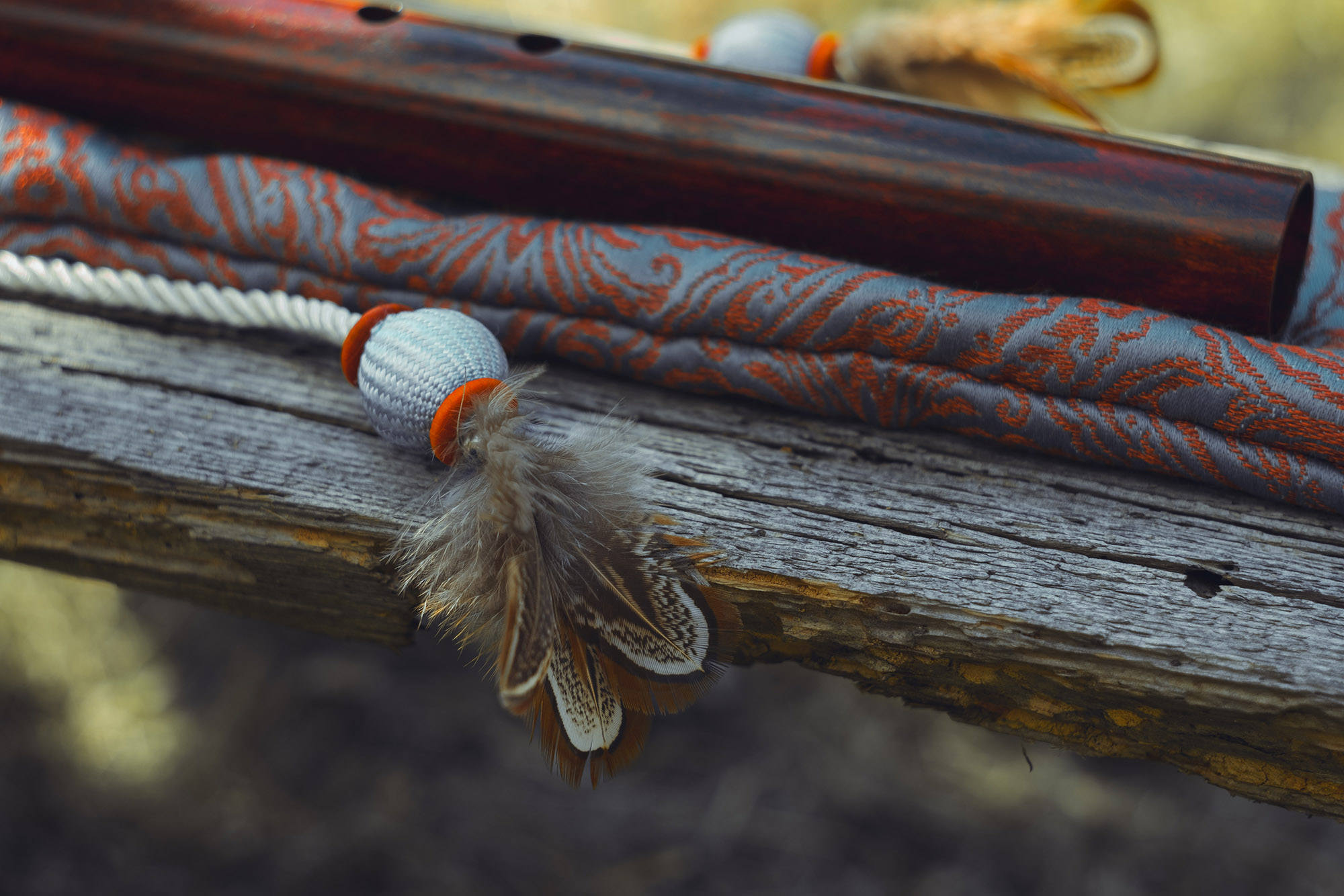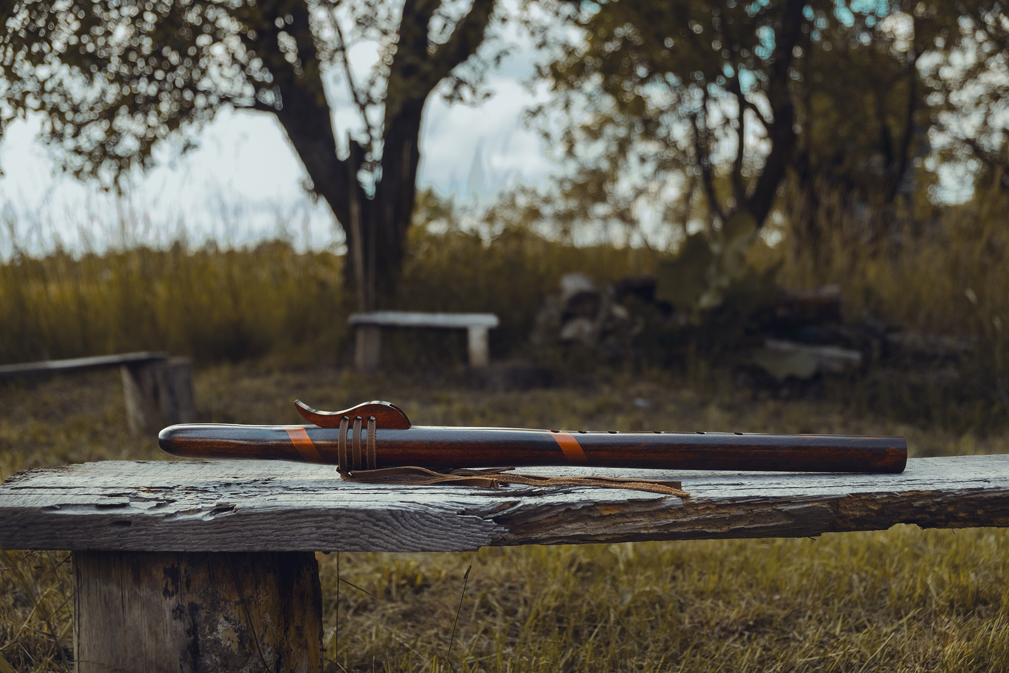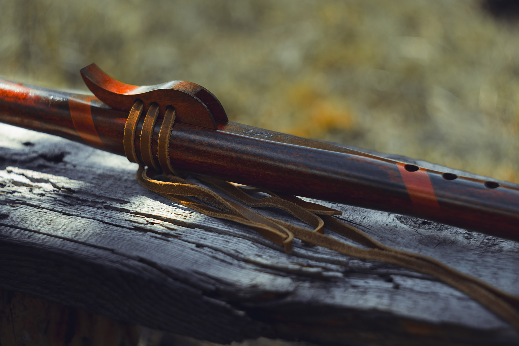 Ręcznie wykonany flet z drewna buku zwyczajnego (Fagus sylvatica), pozyskanego z recyklingu, charakteryzuje się ciepłym i bogatym brzmieniem. Flet prosty, 6-otworowy, inspirowany tradycją rdzennych Amerykanów (Native American Style Flute). Skala pentatoniczna i heksatonika molowa zapewniają szeroką ekspresję muzyczną. Flet został zabarwiony na rustykalny mahoń z miedzianymi ornamentami, a wykończenie typu French polishing (Tru-Oil – 6 warstw) zapewnia trwałość i estetykę. Dokumentacja obejmuje konserwację, warunki przechowywania oraz certyfikat autentyczności.