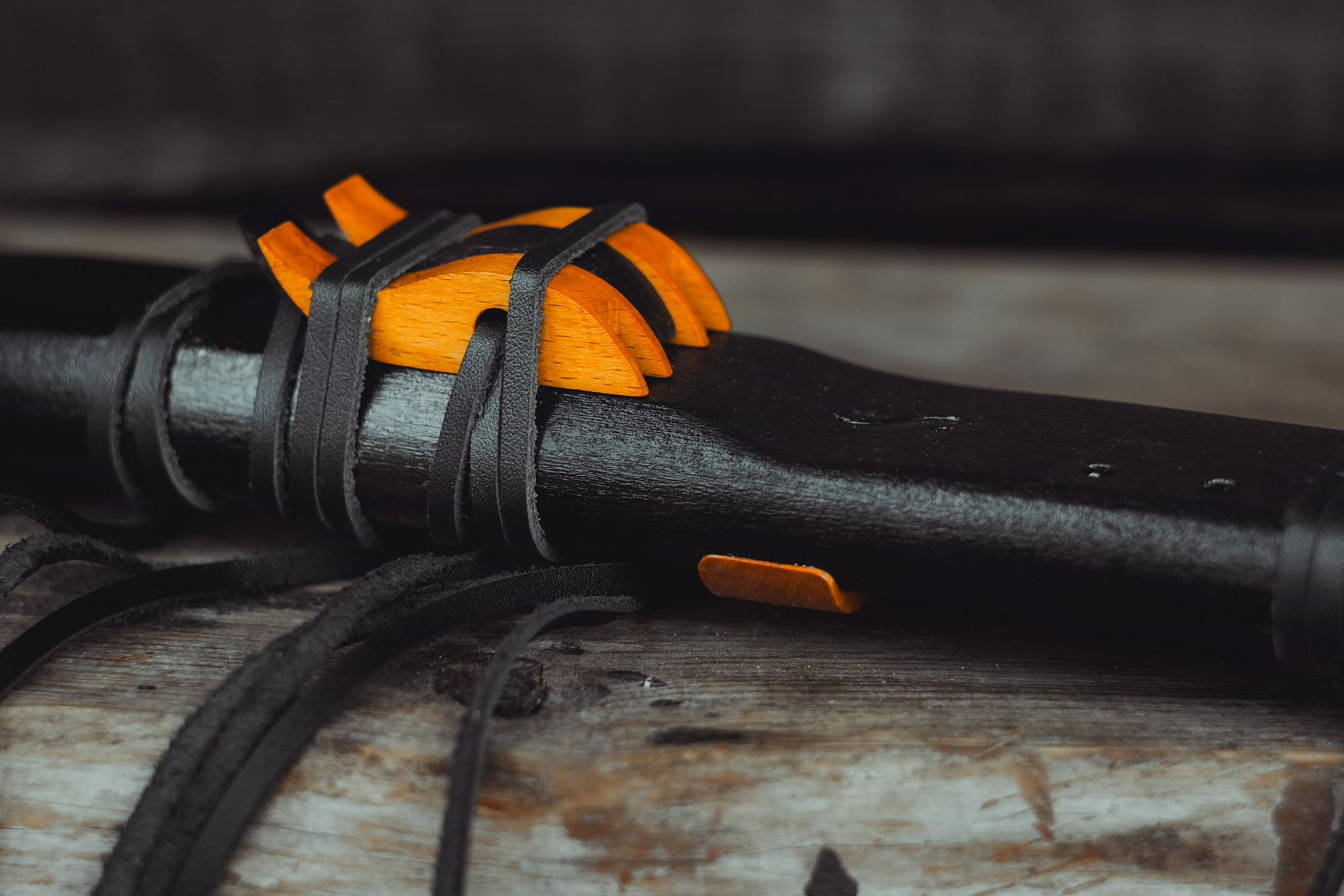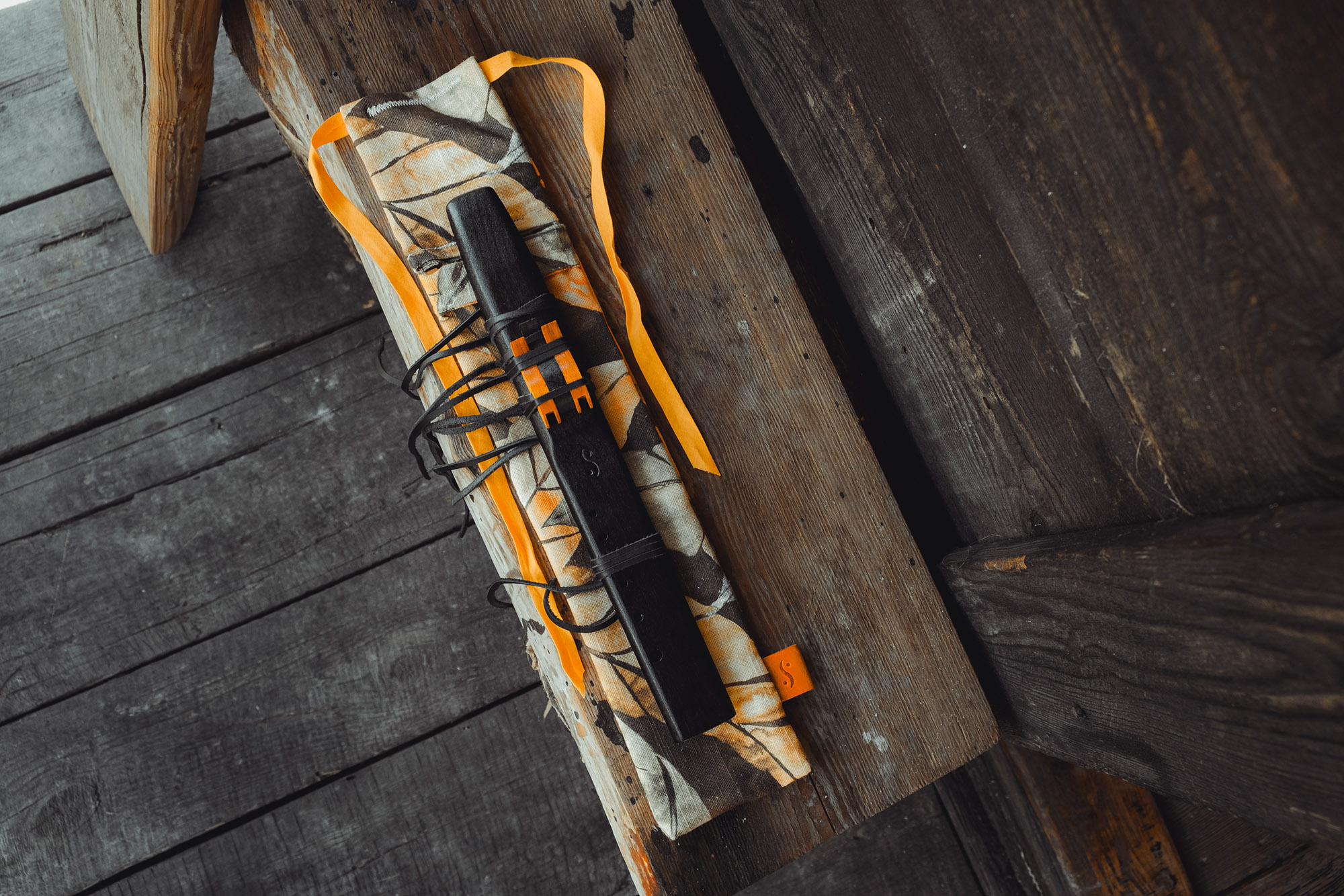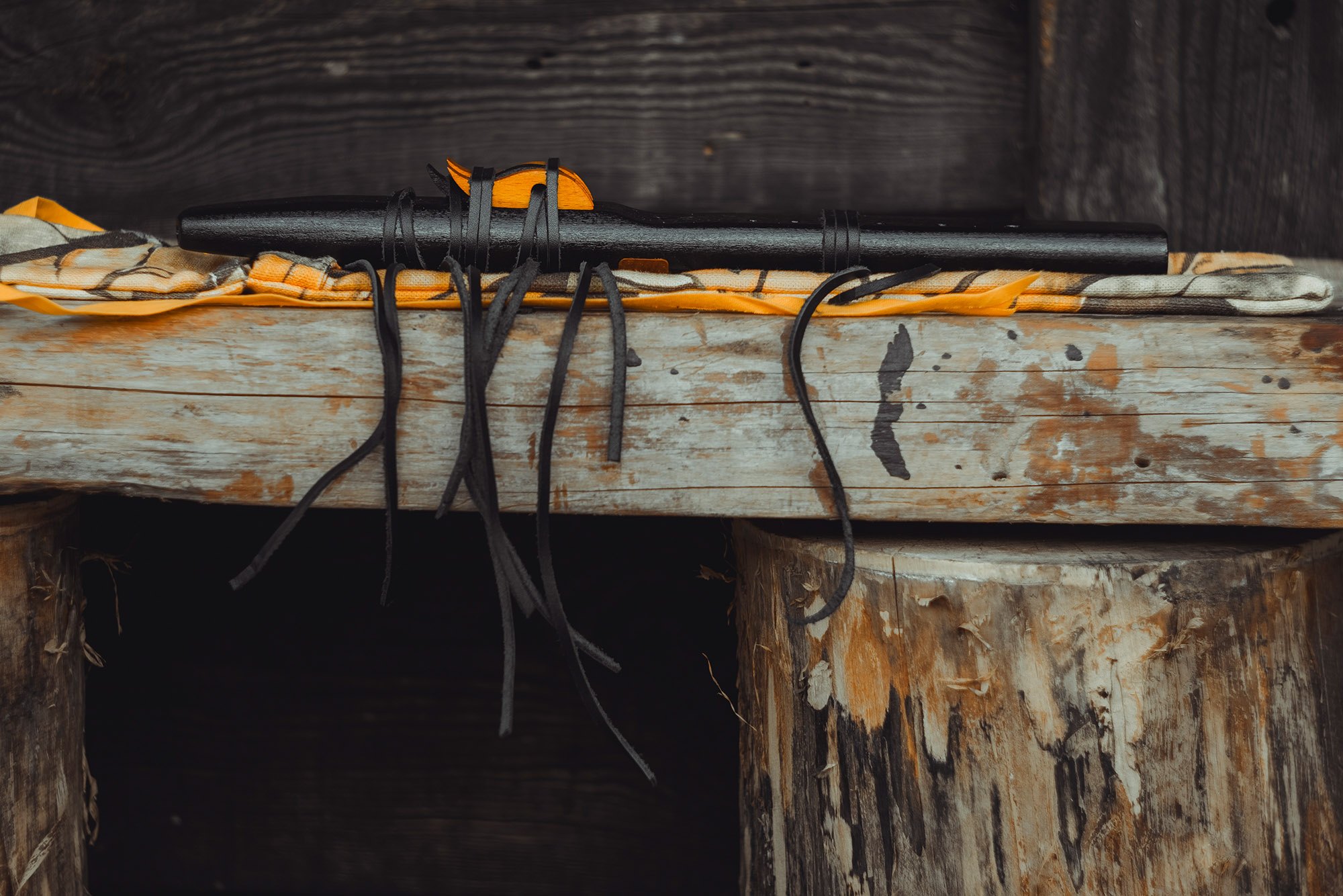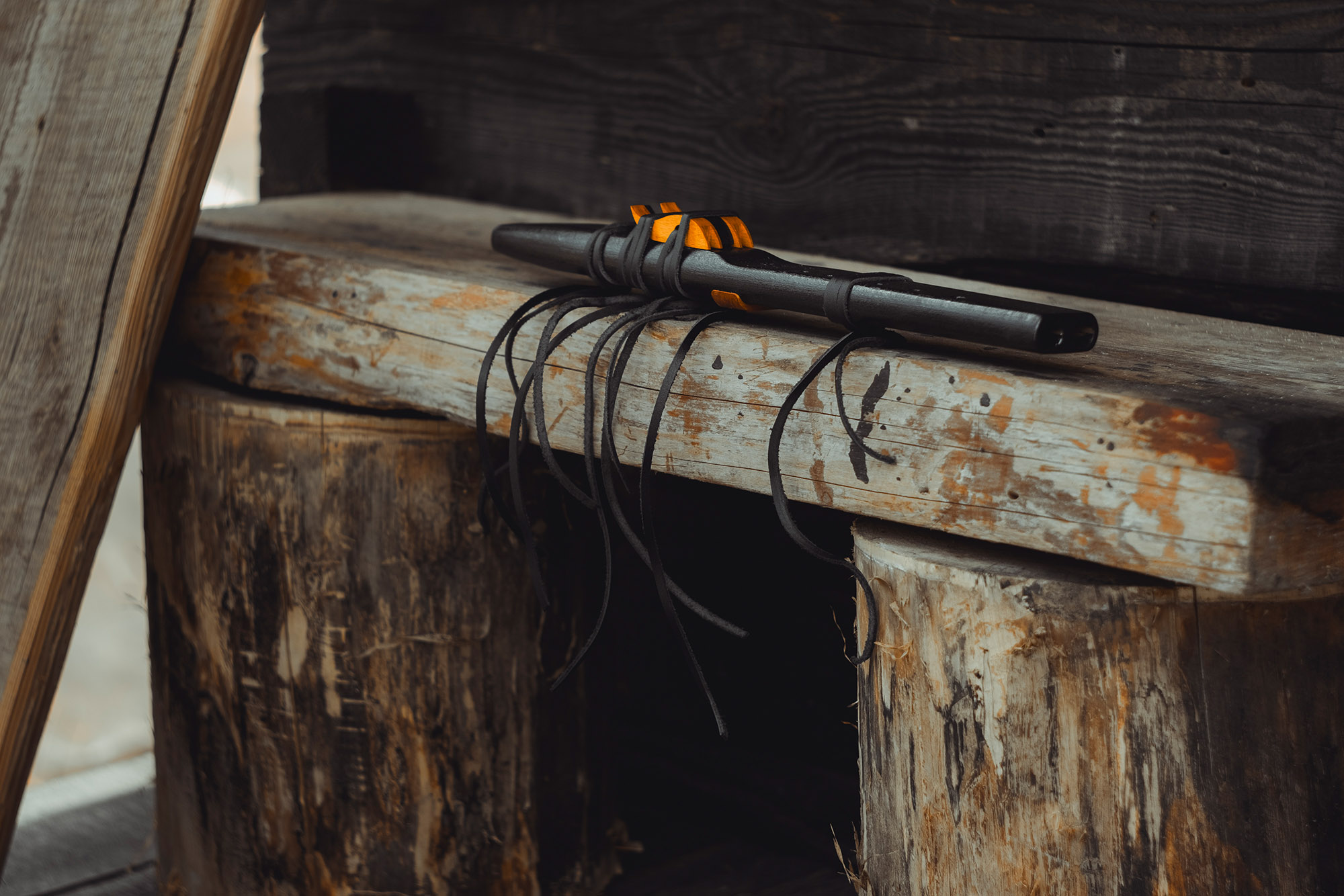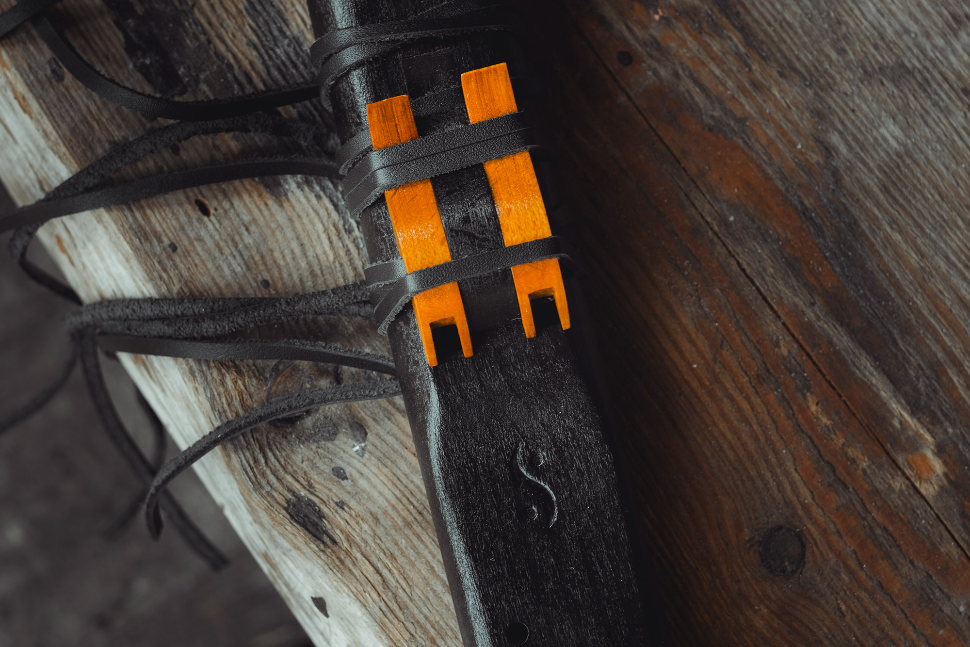 Ręcznie wykonany flet z drewna buku (Fagus sylvatica), pozyskanego z recyklingu. Flet prosty podwójny, 6-otworowy, inspirowany tradycją rdzennych Amerykanów (Native American Style Flute). Charakteryzuje się wysokim, altowym brzmieniem. Skala pentatoniczna i heksatonika molowa pozwalają na szeroką ekspresję muzyczną. Flet został zabarwiony bejcą na rustykalny czarny i żółty kolor, a wykończenie stanowi olejowanie typu French polishing (Tru-Oil – 4 warstwy). Dokumentacja zawiera szczegóły dotyczące konserwacji, przechowywania oraz certyfikat autentyczności.