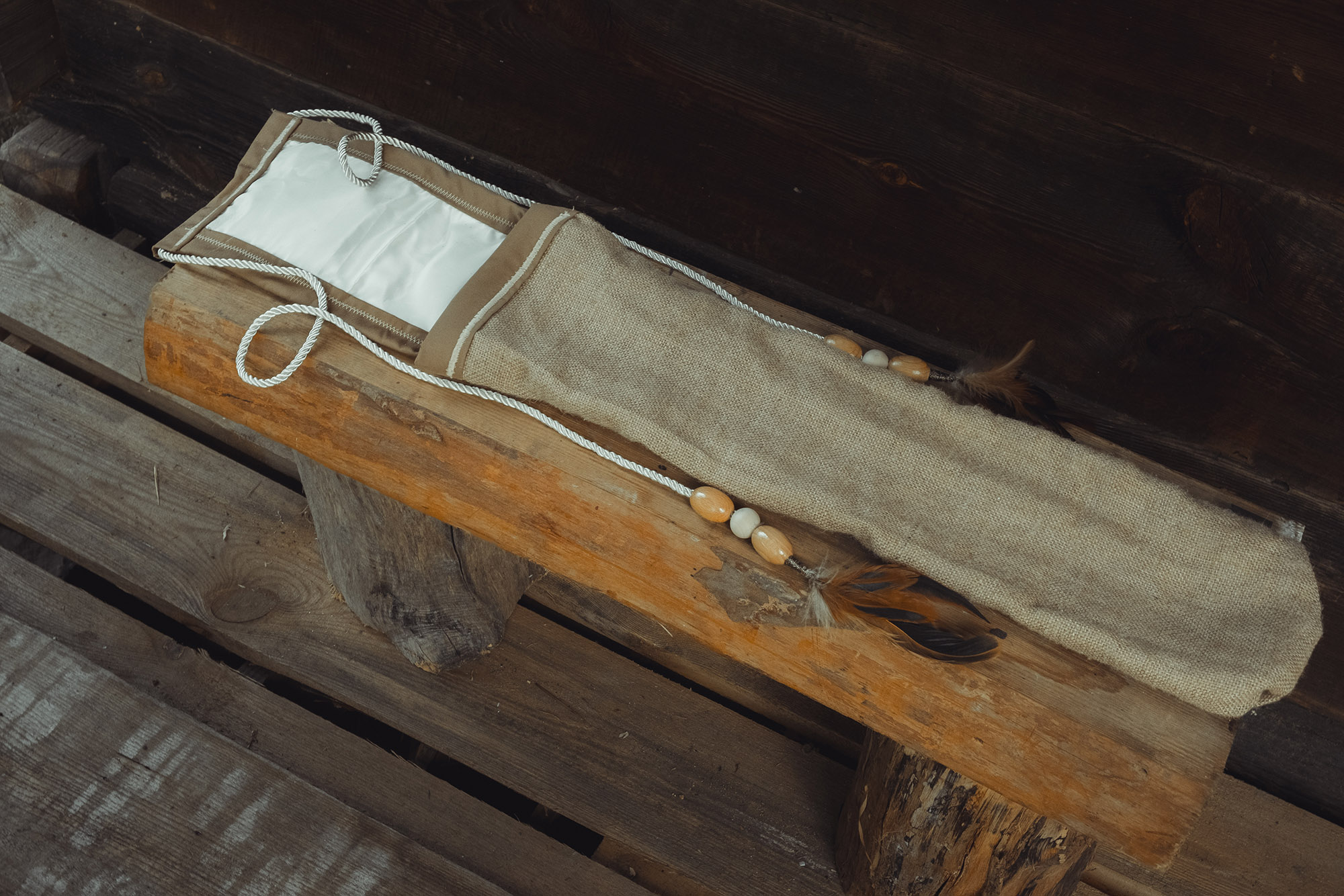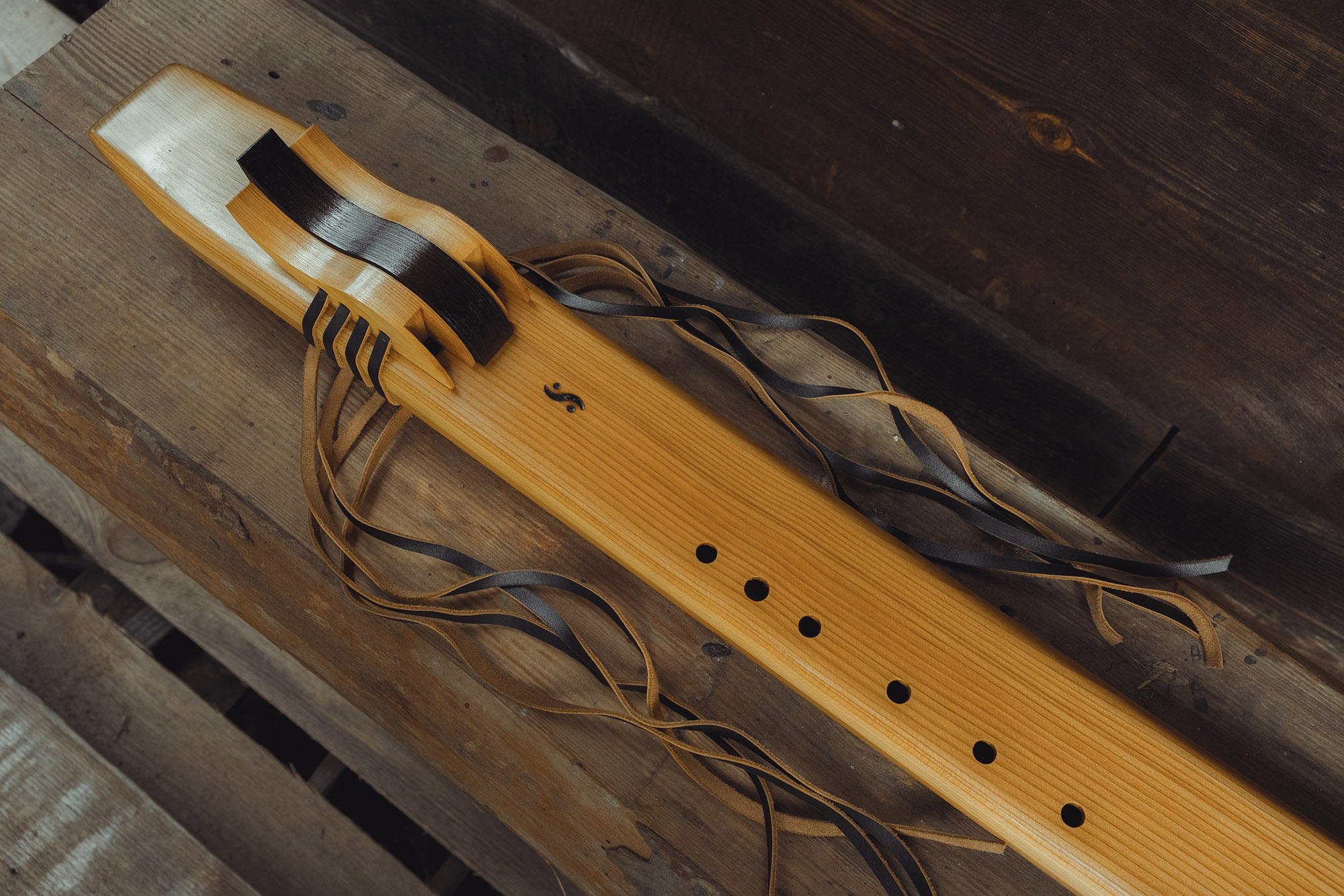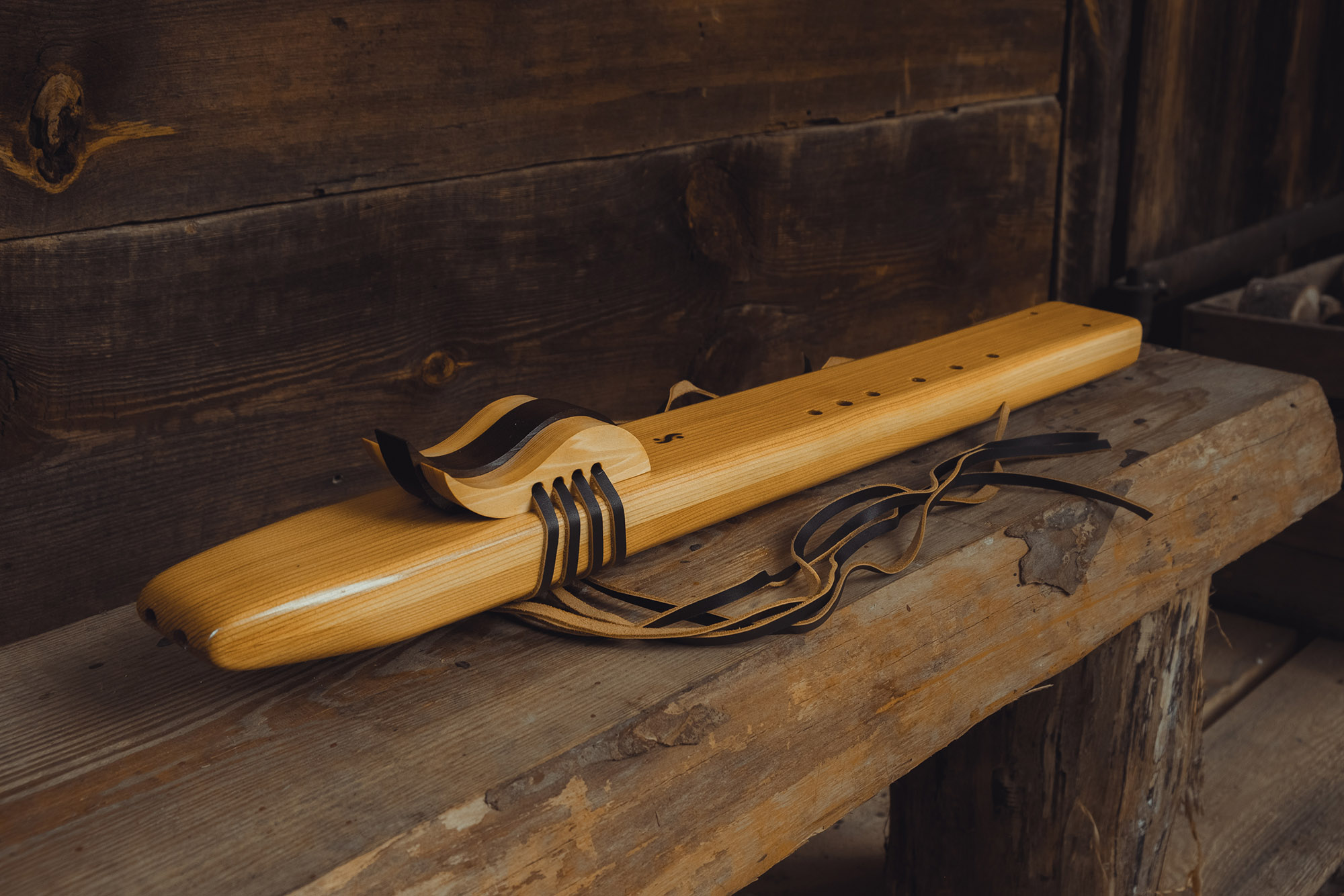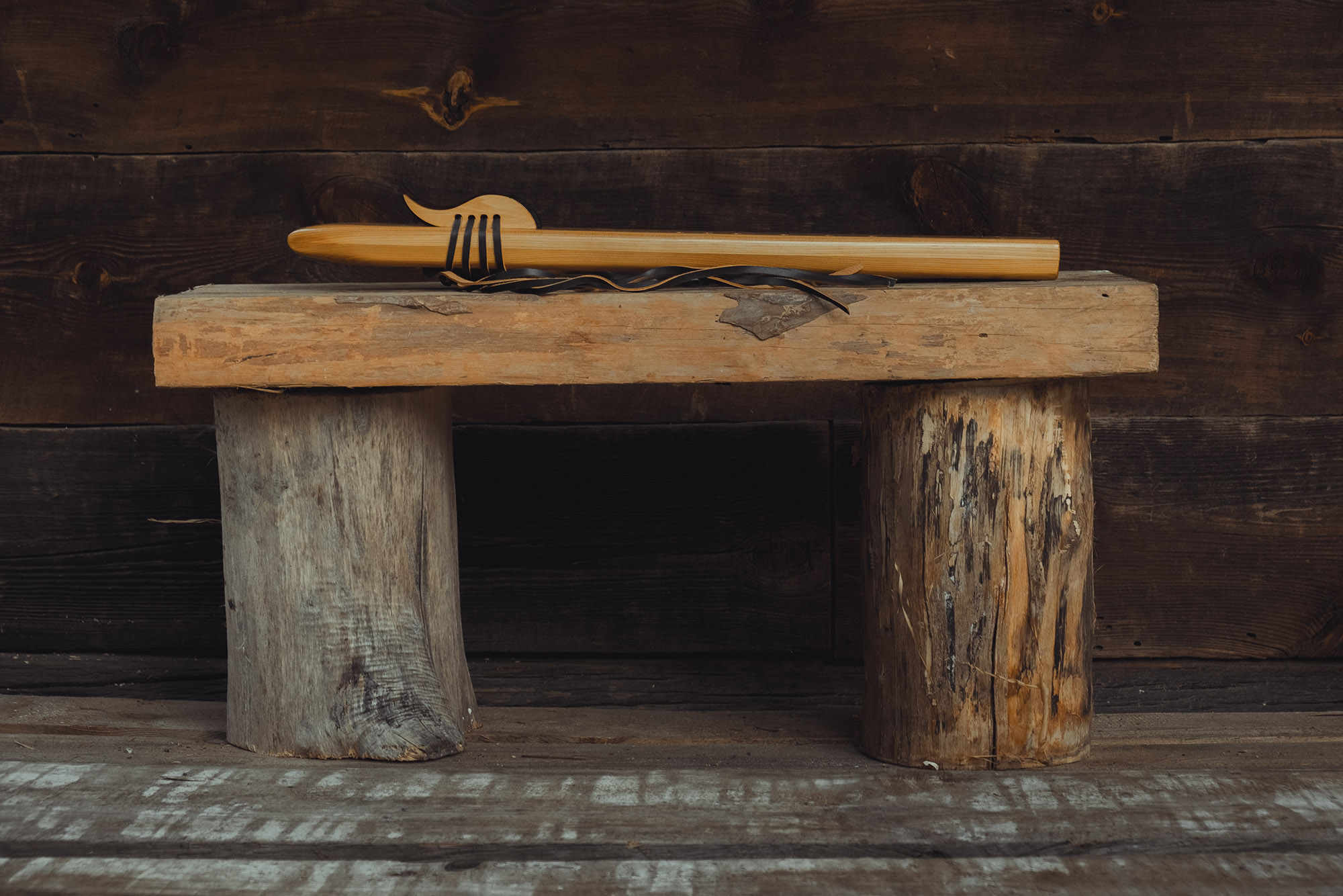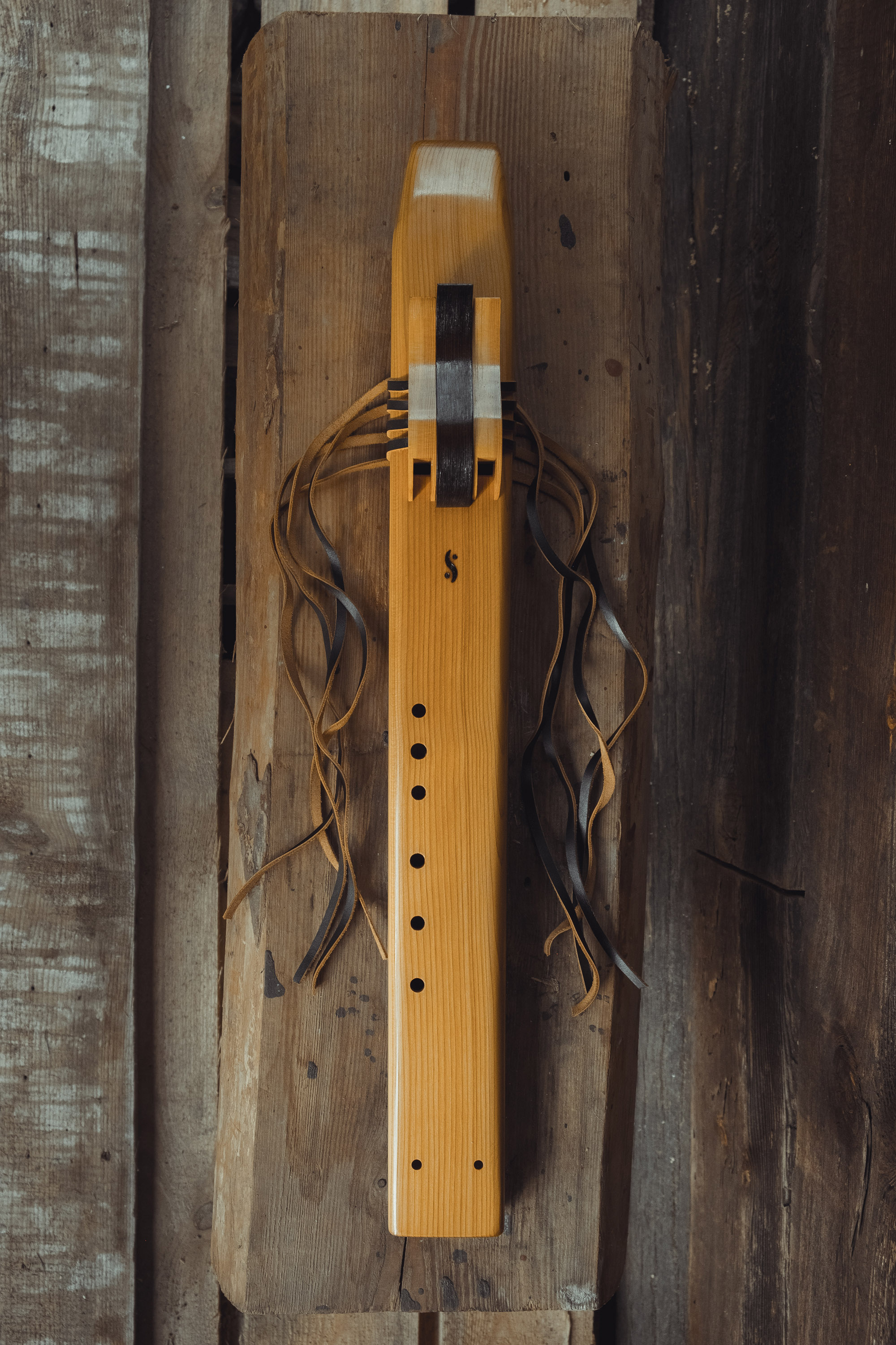 Ręcznie wykonany flet z drewna cedru (Western Red Cedar, Thuja plicata), pozyskanego z Ameryki Północnej. Flet prosty podwójny, 6-otworowy, w stylu rdzennych Amerykanów (Native American Style Flute), charakteryzuje się średnim, ciepłym brzmieniem. Skala pentatoniczna i heksatonika molowa umożliwiają szeroką ekspresję muzyczną. Flet jest zabarwiony na rustykalny palisander i wykończony olejowaniem typu French polishing (Tru-Oil – 6 warstw). Dokumentacja zawiera informacje o konserwacji, przechowywaniu oraz certyfikat autentyczności.
