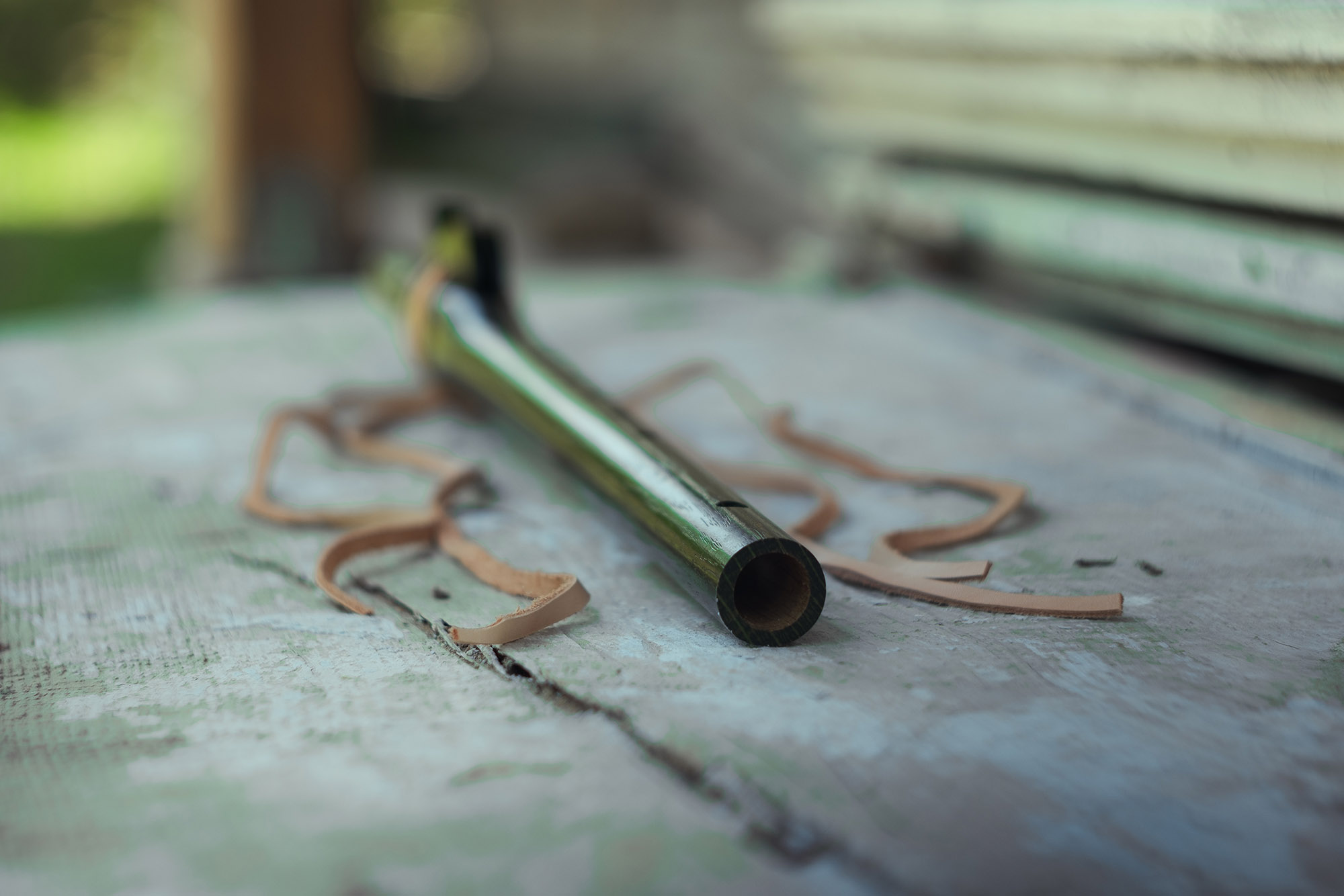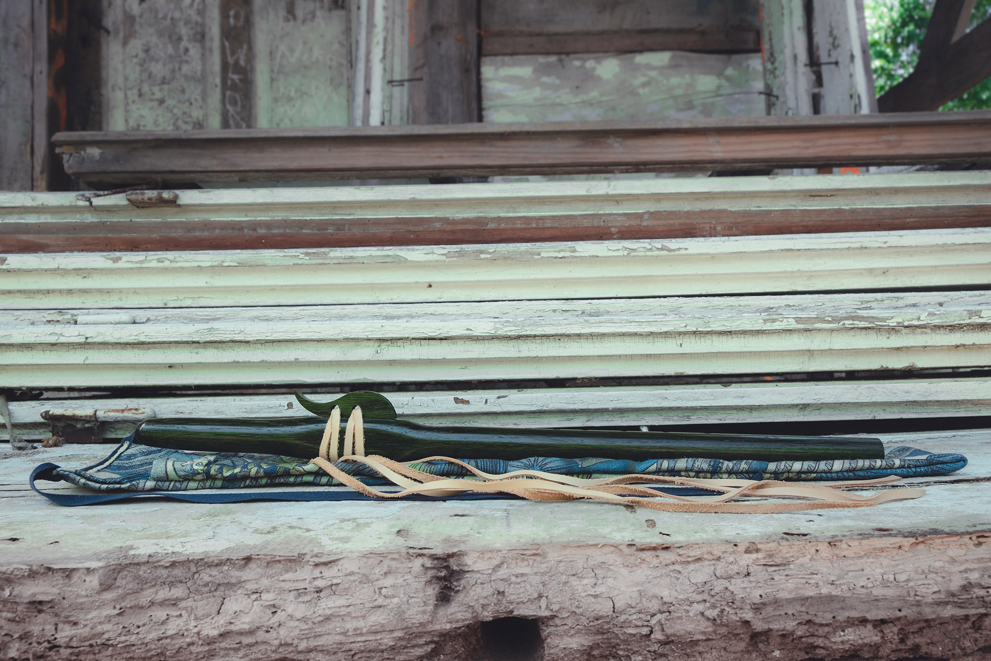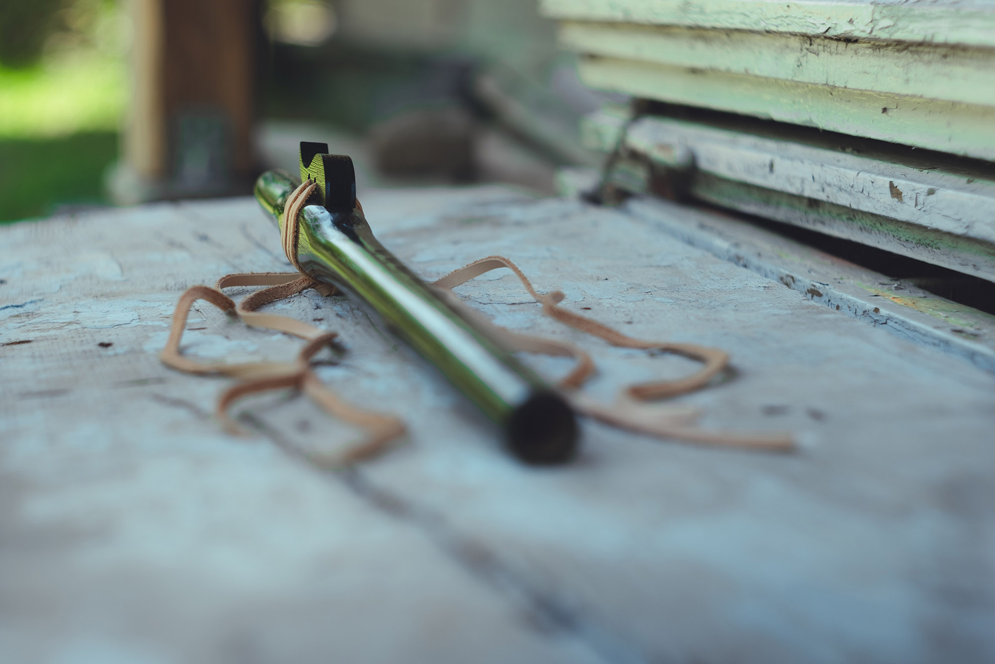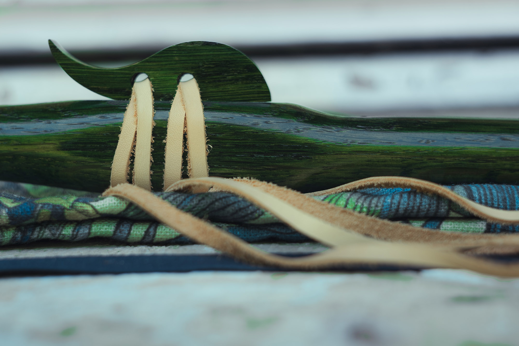 Ręcznie wykonany flet z drewna dębu bezszypułkowego (Quercus petraea), pochodzącego z recyklingu. Flet prosty, 6-otworowy, w stylu rdzennych Amerykanów (Native American Style Flute), charakteryzuje się mocnym, głębokim brzmieniem. Skala pentatoniczna i heksatonika molowa pozwalają na szeroką ekspresję muzyczną. Flet jest zabarwiony na rustykalny zielony kolor i wykończony olejowaniem typu French polishing (Tru-Oil – 6 warstw), co nadaje mu wyjątkowy wygląd i trwałość. Dokumentacja zawiera szczegółowe informacje techniczne, konserwację, warunki przechowywania oraz certyfikat autentyczności.