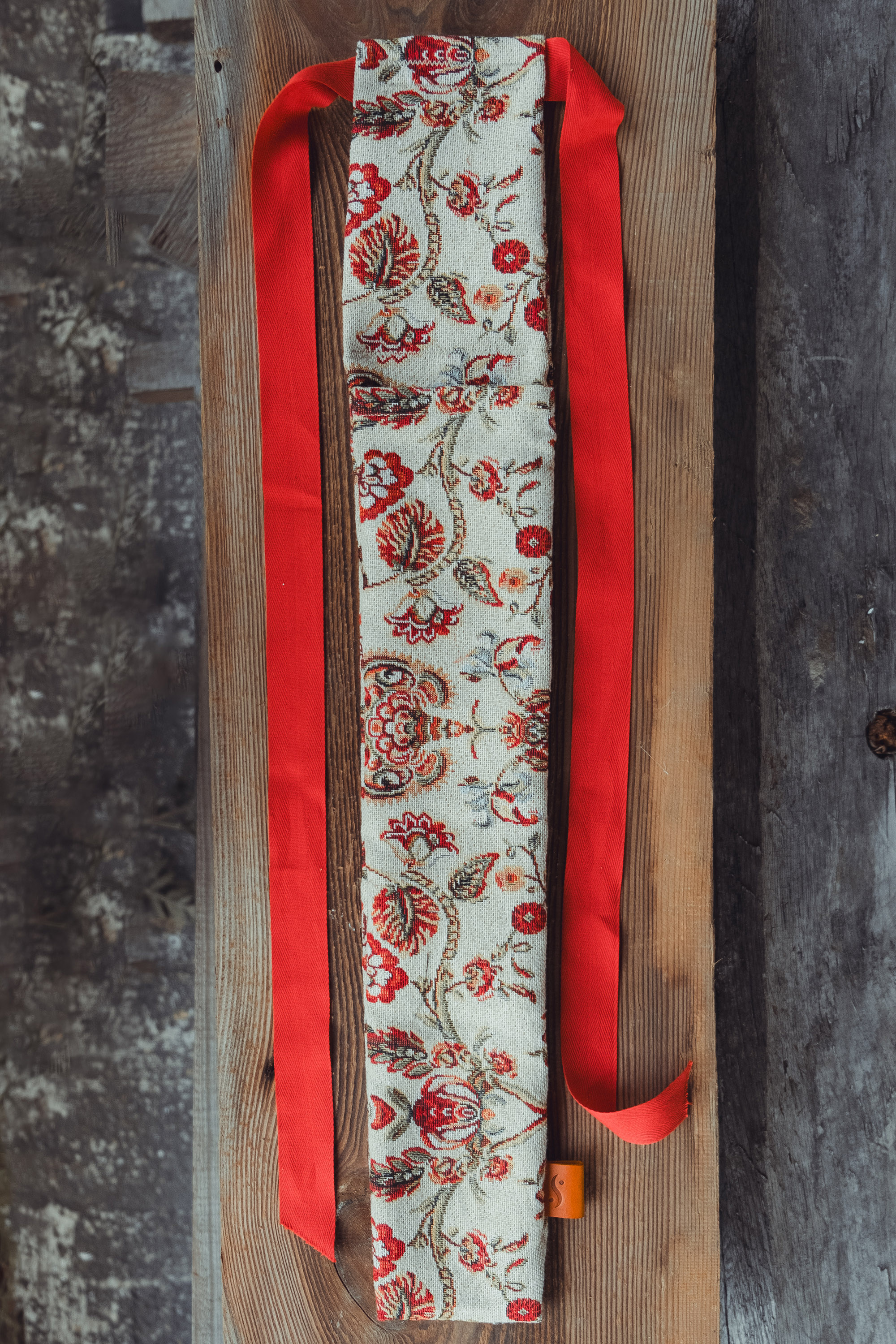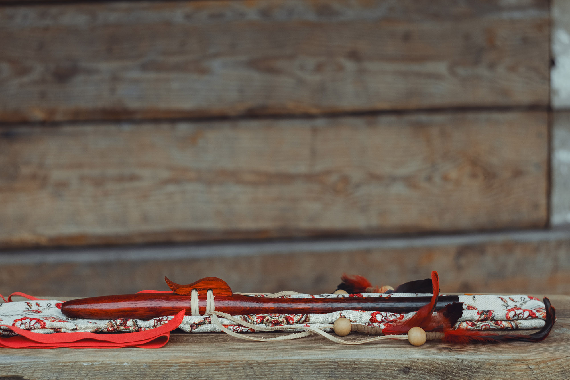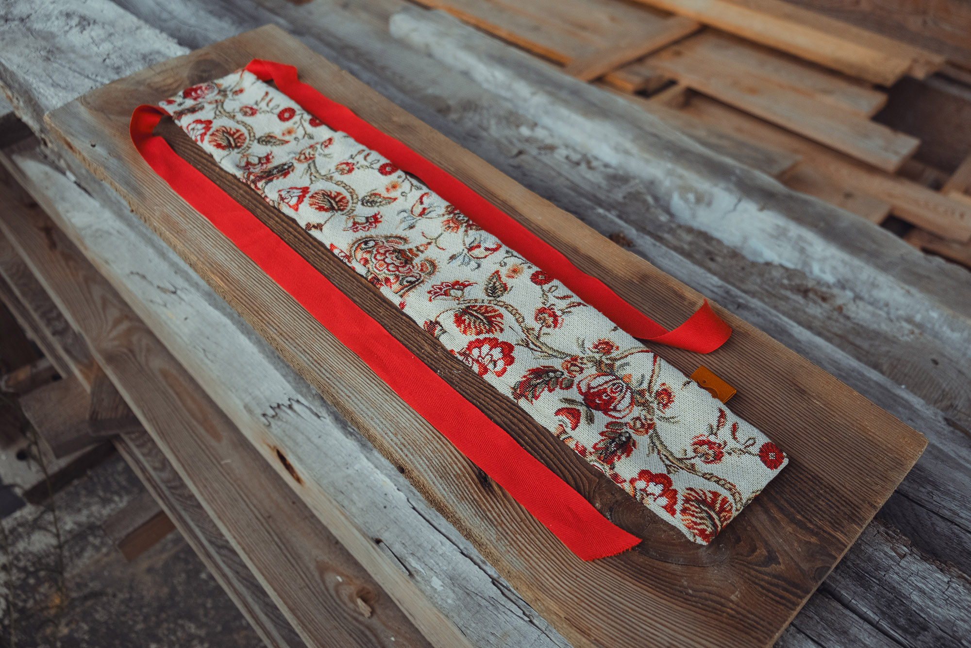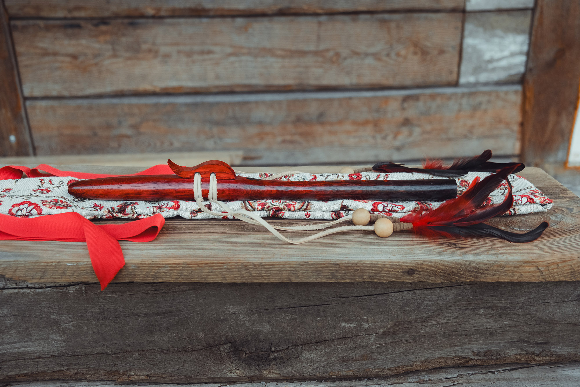 Ręcznie wykonany flet z drewna dębu bezszypułkowego (Quercus petraea), pozyskanego z recyklingu, o ciepłym i donośnym brzmieniu. Flet prosty, 6-otworowy, inspirowany tradycją rdzennych Amerykanów (Native American Style Flute). Skala pentatoniczna i heksatonika molowa umożliwiają szeroką ekspresję muzyczną. Flet jest zabarwiony na rustykalny czerwony kolor z czarnymi akcentami, ubytki wypełniono ekologiczną żywicą epoksydową z barwnikiem perłowym. Wykończenie typu French polishing (Tru-Oil – 6 warstw) zapewnia estetykę i trwałość. Dokumentacja zawiera informacje o konserwacji, przechowywaniu i certyfikat autentyczności.