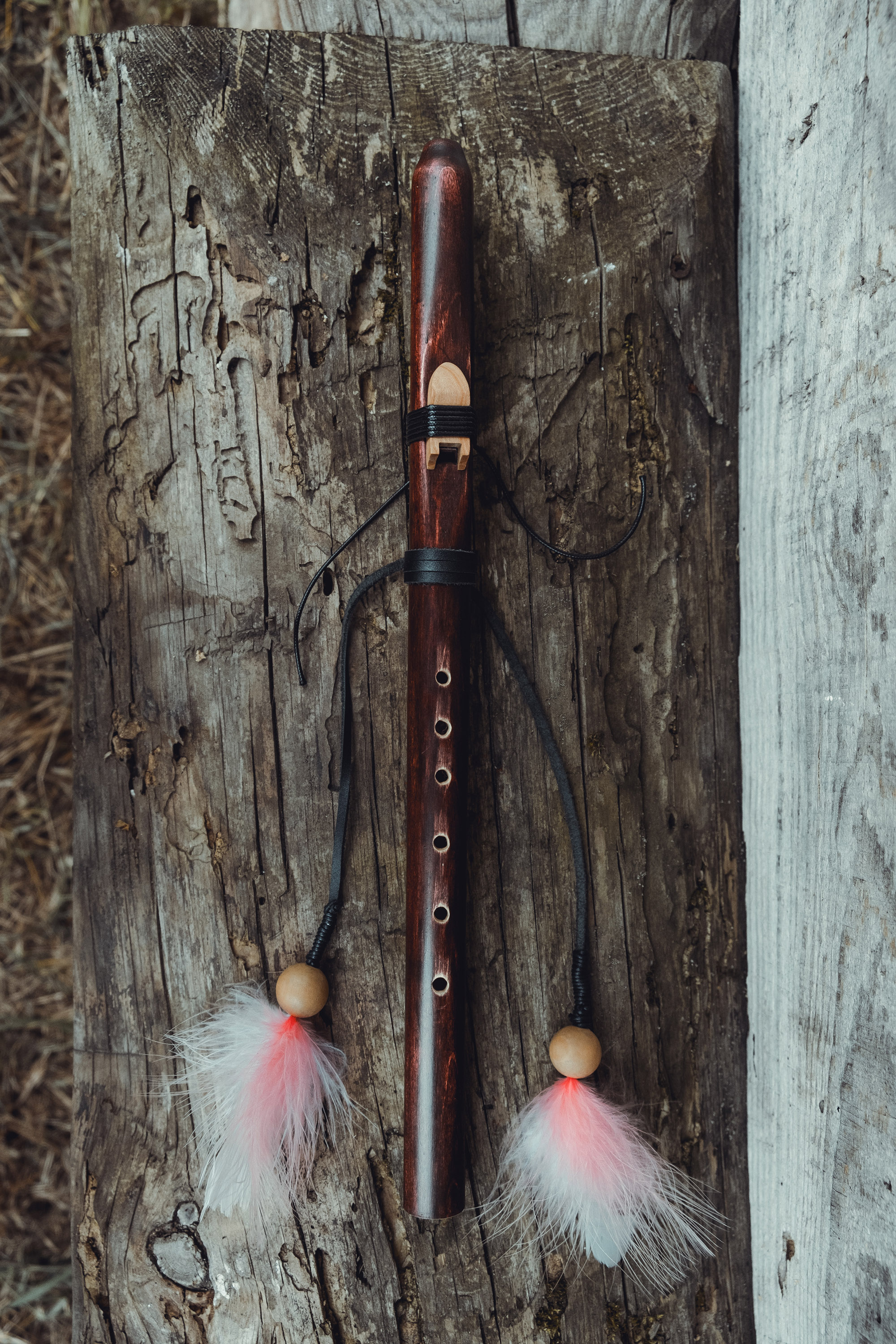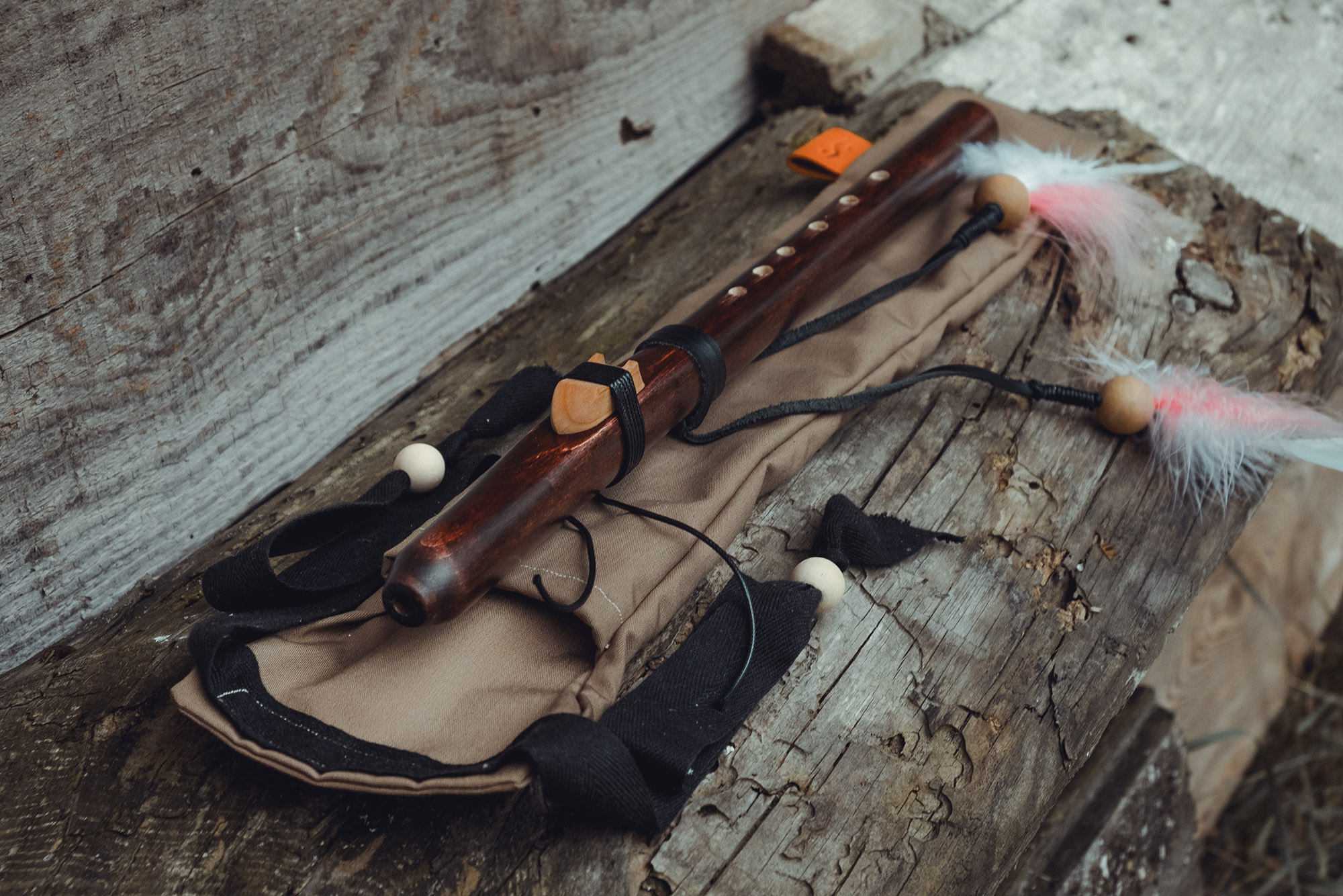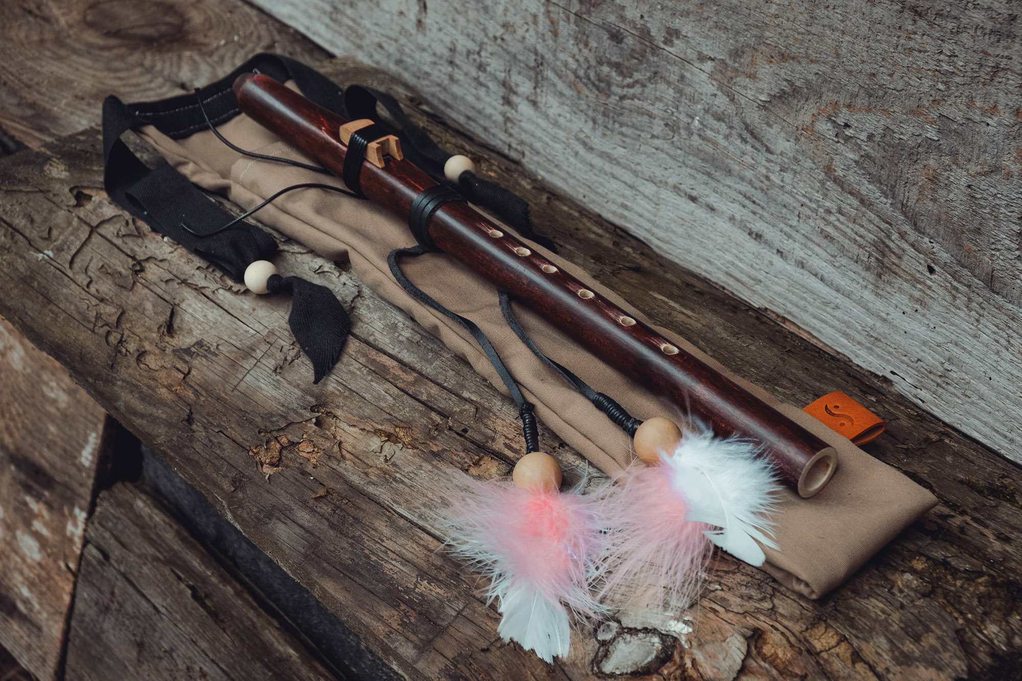 Ręcznie wykonany flet z drewna klonu (Acer platanoides), pozyskanego z terenów leśnych w Polsce. Flet prosty, 6-otworowy, inspirowany tradycją rdzennych Amerykanów (Native American Style Flute). Charakteryzuje się ciepłym, wysokim brzmieniem. Skala pentatoniczna i heksatonika molowa umożliwiają szeroką ekspresję muzyczną, z możliwością grania skali chromatycznej. Flet jest zabarwiony na rustykalny mahoń i wykończony olejem tungowym oraz naturalnymi woskami. Dokumentacja zawiera szczegółowe informacje o konserwacji, warunkach przechowywania oraz certyfikat autentyczności.