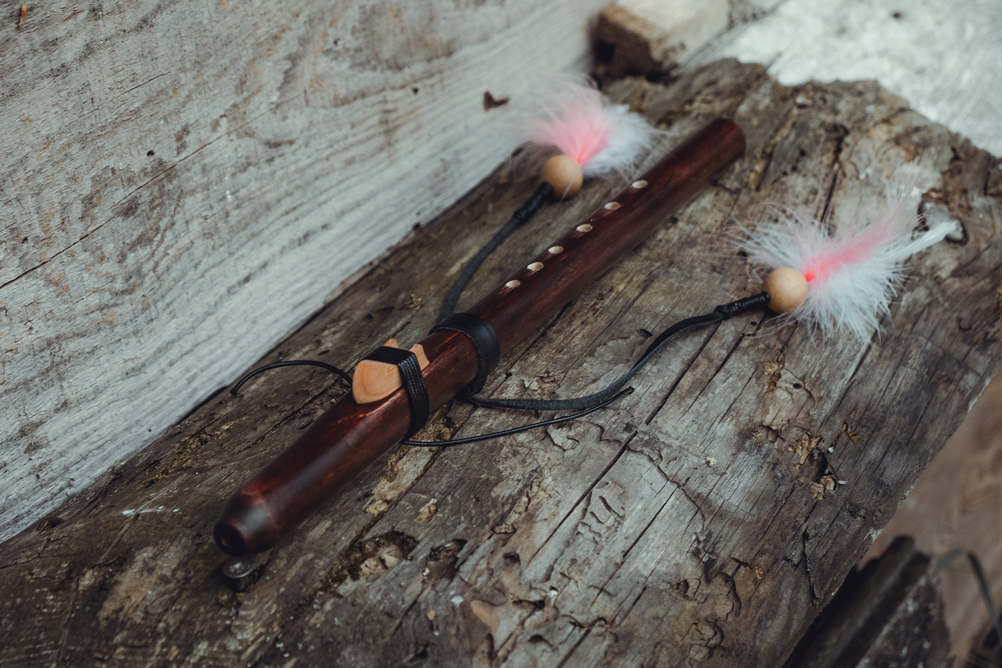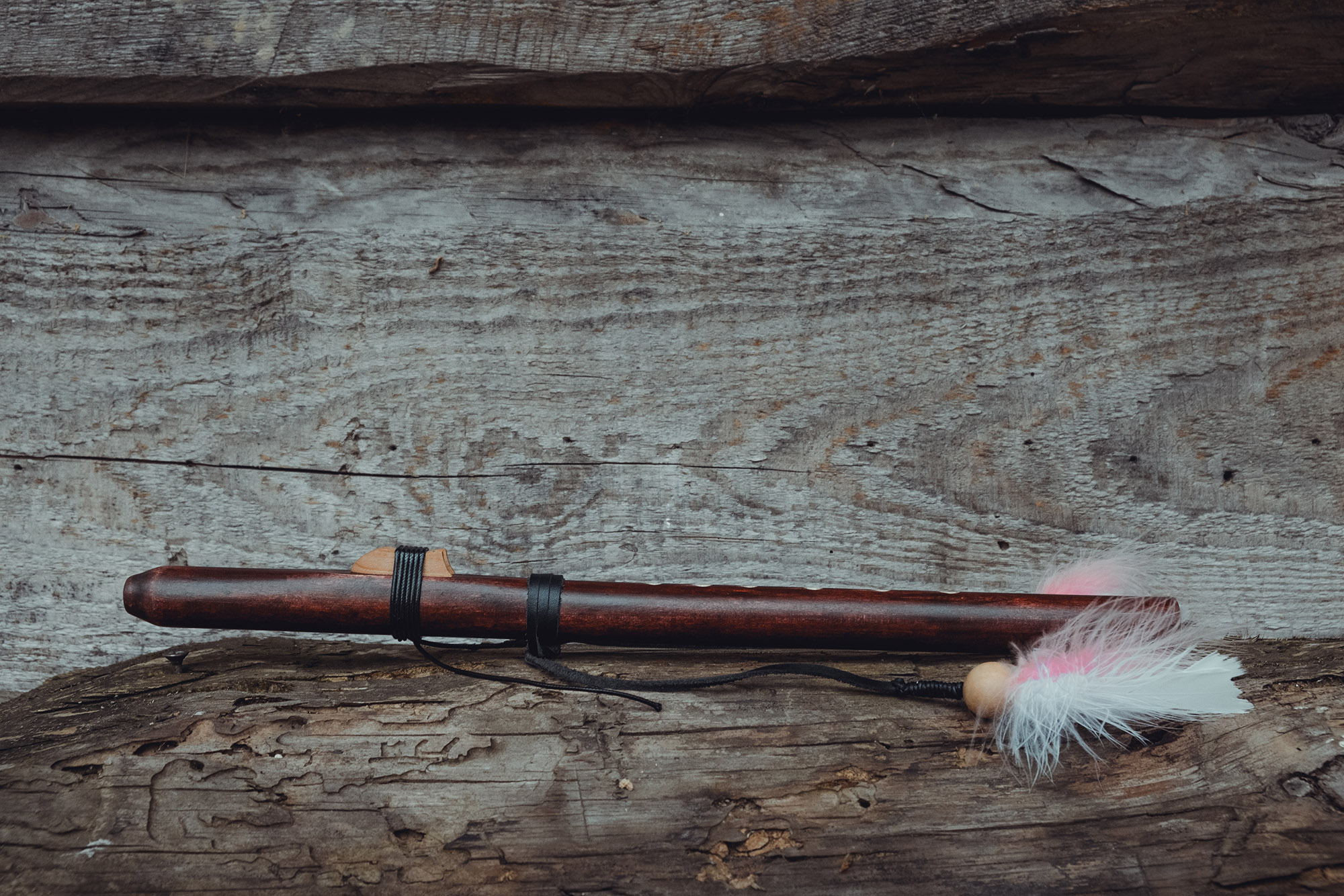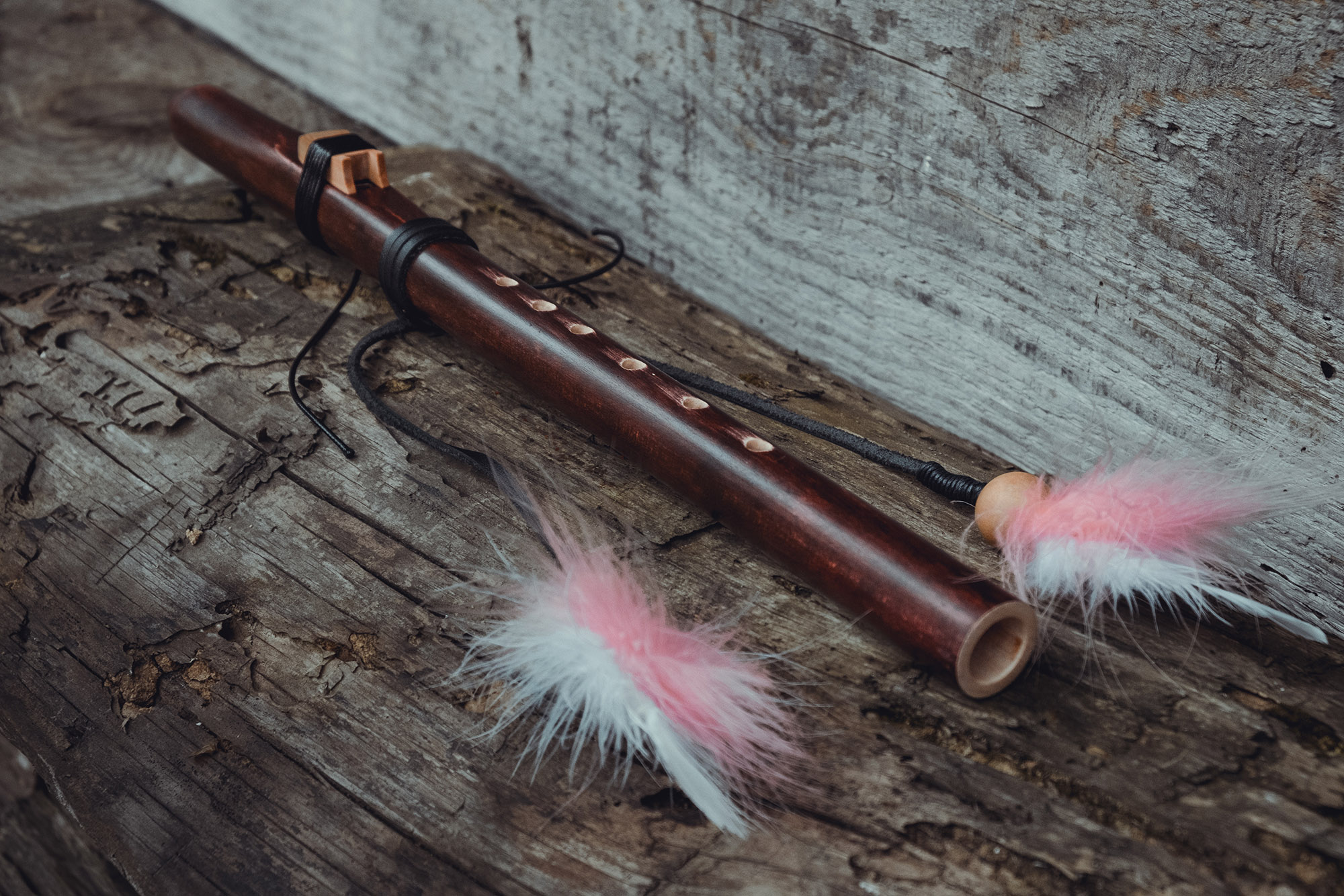 Ręcznie wykonany flet z drewna klonu (Acer platanoides), pozyskanego z terenów leśnych w Polsce. Flet prosty, 6-otworowy, inspirowany tradycją rdzennych Amerykanów (Native American Style Flute). Charakteryzuje się ciepłym, wysokim brzmieniem. Skala pentatoniczna i heksatonika molowa umożliwiają szeroką ekspresję muzyczną, z możliwością grania skali chromatycznej. Flet jest zabarwiony na rustykalny mahoń i wykończony olejem tungowym oraz naturalnymi woskami. Dokumentacja zawiera szczegółowe informacje o konserwacji, warunkach przechowywania oraz certyfikat autentyczności.