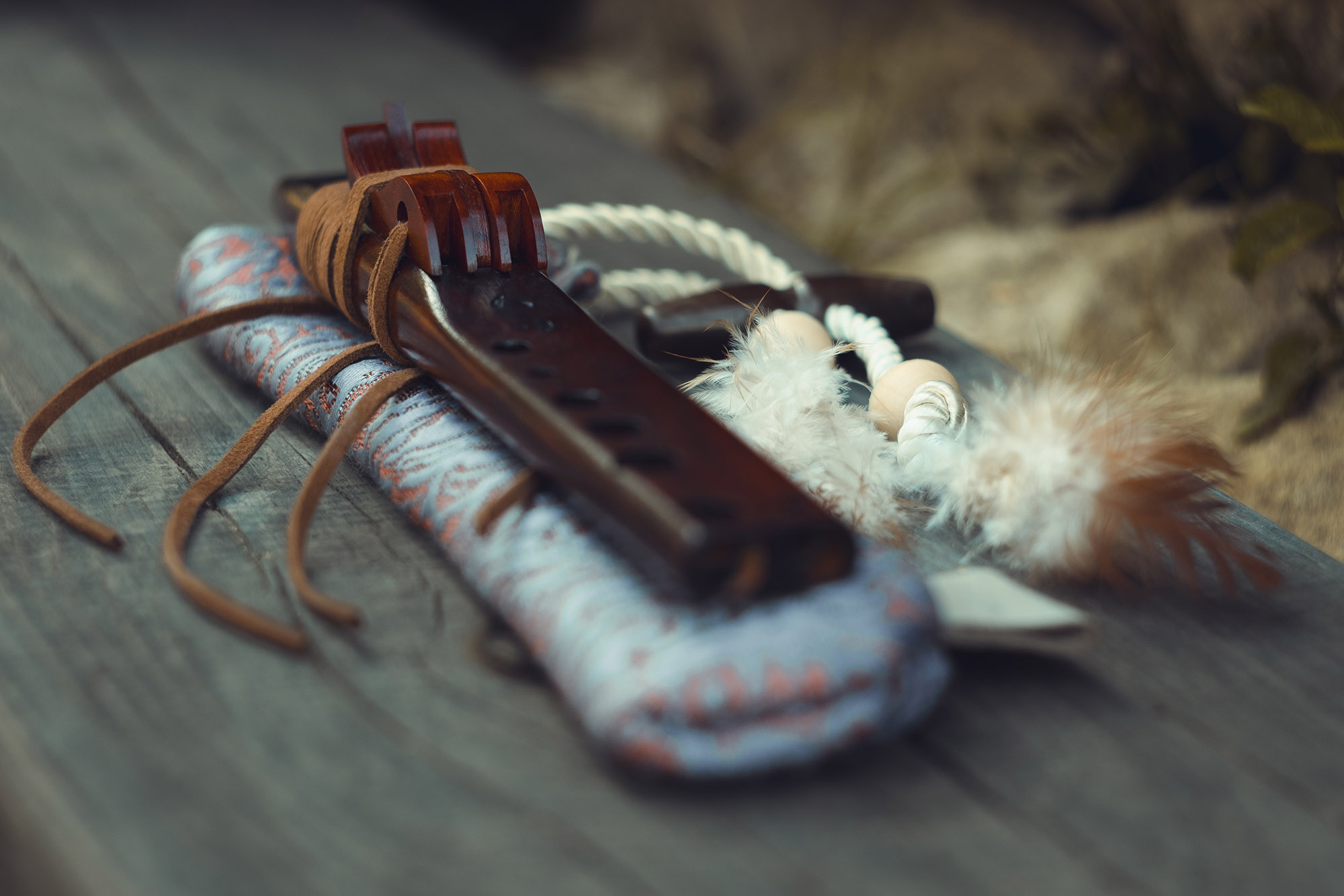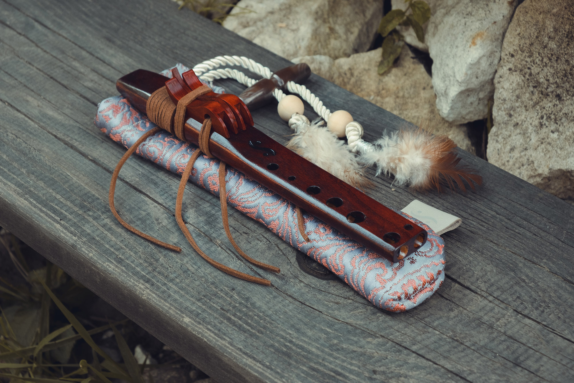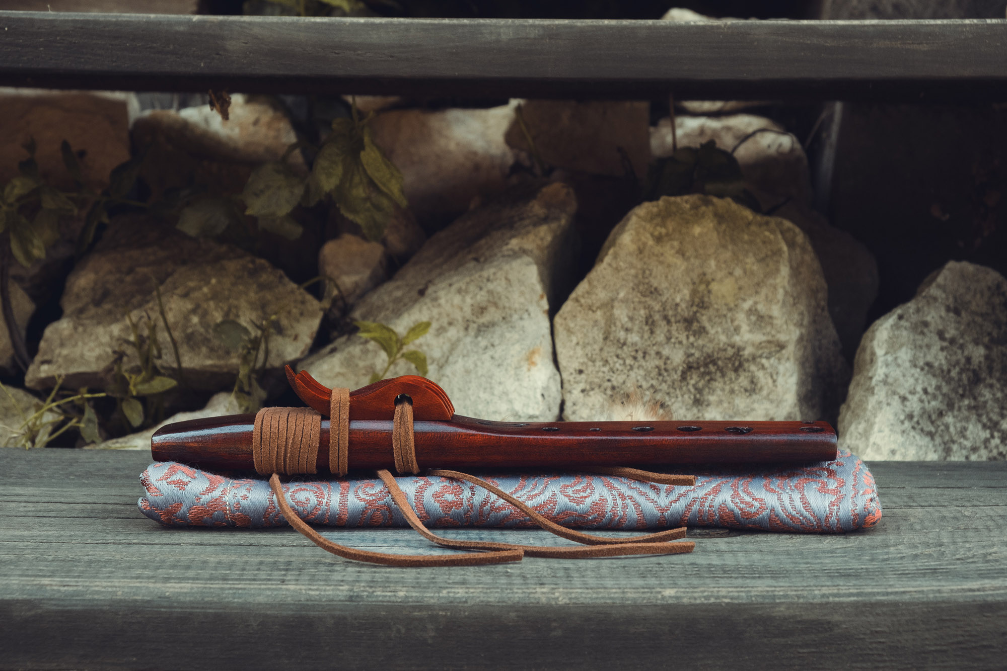 Ręcznie wykonany flet z drewna moreli (Prunus armeniaca), pozyskanego z sadu owocowego. Flet prosty podwójny, 5-otworowy, inspirowany tradycją rdzennych Amerykanów (Native American Style Flute). Charakteryzuje się jasnym, sopranowym brzmieniem. Skala pentatoniczna molowa umożliwia szeroką ekspresję muzyczną. Flet jest zabarwiony na rustykalny kolor mahoniowy i wykończony olejowaniem typu French polishing (Tru-Oil – 6 warstw), co zapewnia trwałość i estetykę. Dokumentacja obejmuje konserwację, warunki przechowywania oraz certyfikat autentyczności.