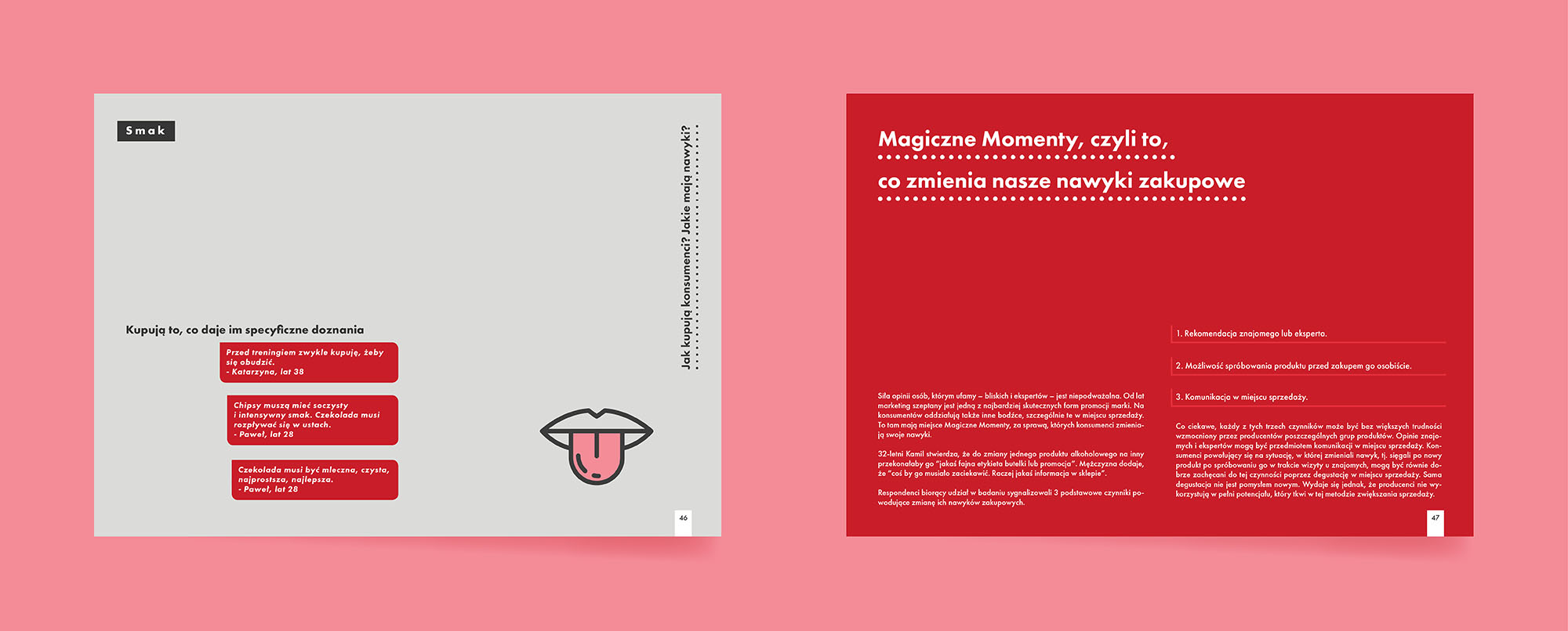 Raport „Z perspektywy klienta” analizuje współczesne zachowania zakupowe konsumentów, koncentrując się na ich utartych nawykach oraz wpływie na tzw. „Syndrom Zombie” – mechaniczne, bezrefleksyjne wybory w sklepie. Dokument opisuje czynniki kształtujące decyzje zakupowe, jak cena, dostępność, preferencje jakościowe i etyczne wybory. Wskazuje także na „Magiczne Momenty” – sytuacje, które mogą zmieniać nawyki klientów. Raport zawiera rekomendacje dla branży FMCG, jak lepiej wykorzystać te tendencje do budowania lojalności i wzrostu sprzedaży.
