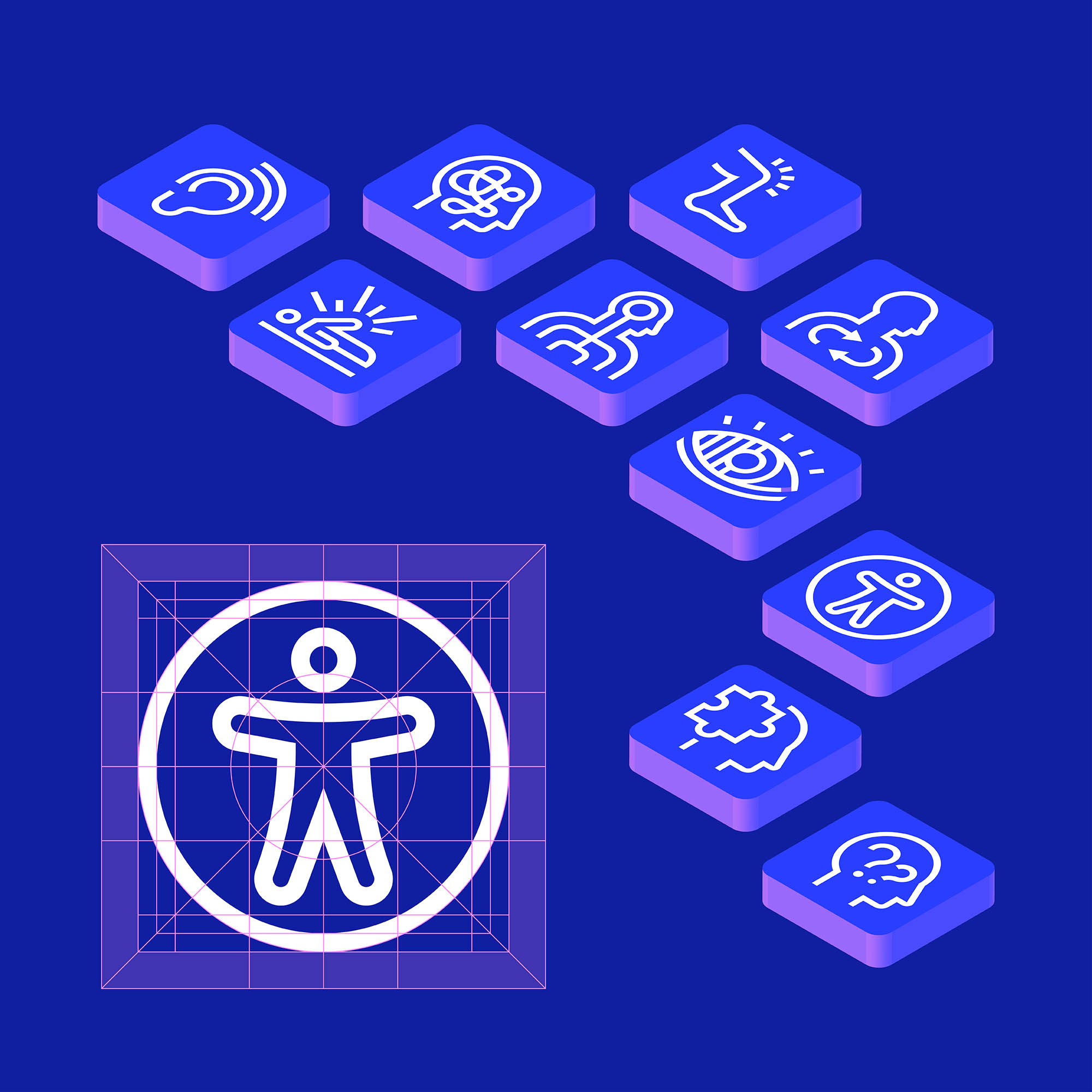 Ikony wspierają system identyfikacji wizualnej powiązany z podręcznikiem Dostępnościomierz, pomagając tworzyć bardziej inkluzywne ogłoszenia o pracę. Symbolizują różne przyczyny niepełnosprawności, takie jak upośledzenie umysłowe, choroby psychiczne, problemy ze słuchem i wzrokiem, epilepsję oraz upośledzenia ruchowe. Projekt spełnia standardy WCAG 2.1 i WCAG 2.2, co zapewnia ich dostępność. Stworzone w stylu Material You (Material Design 3 by Google) i Glyphicon, łączą nowoczesny wygląd z funkcjonalnością.