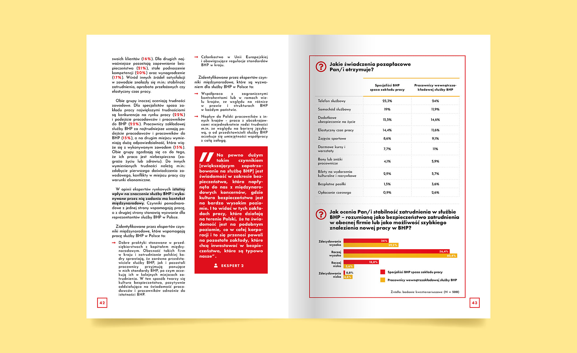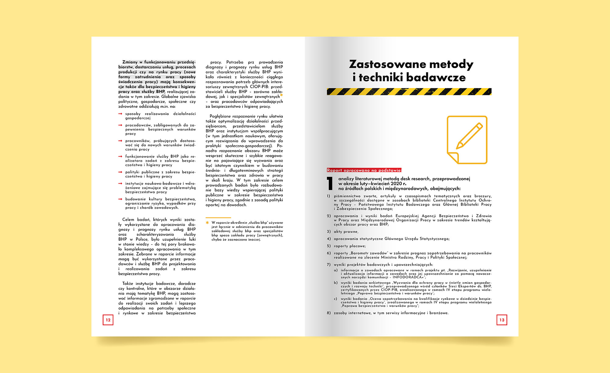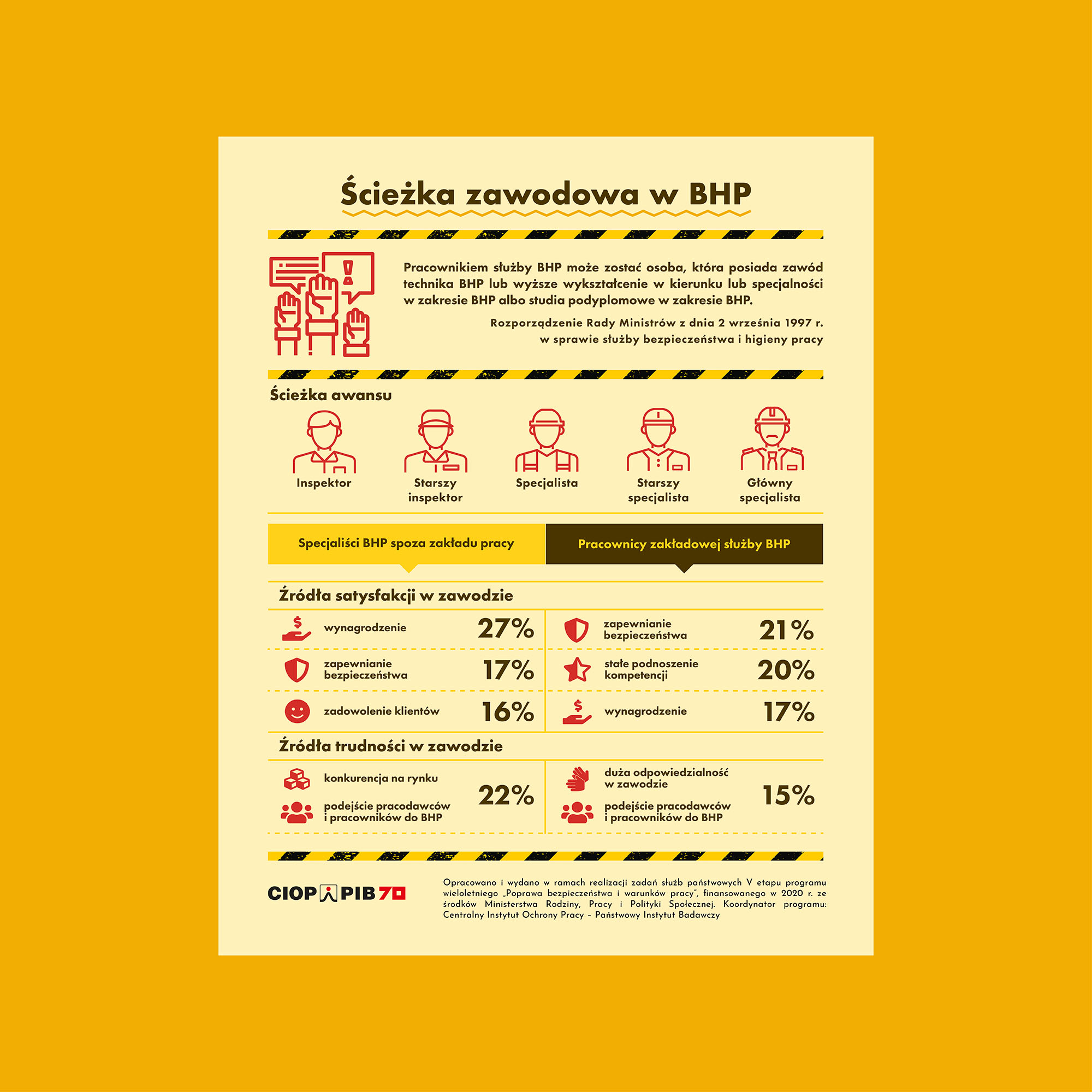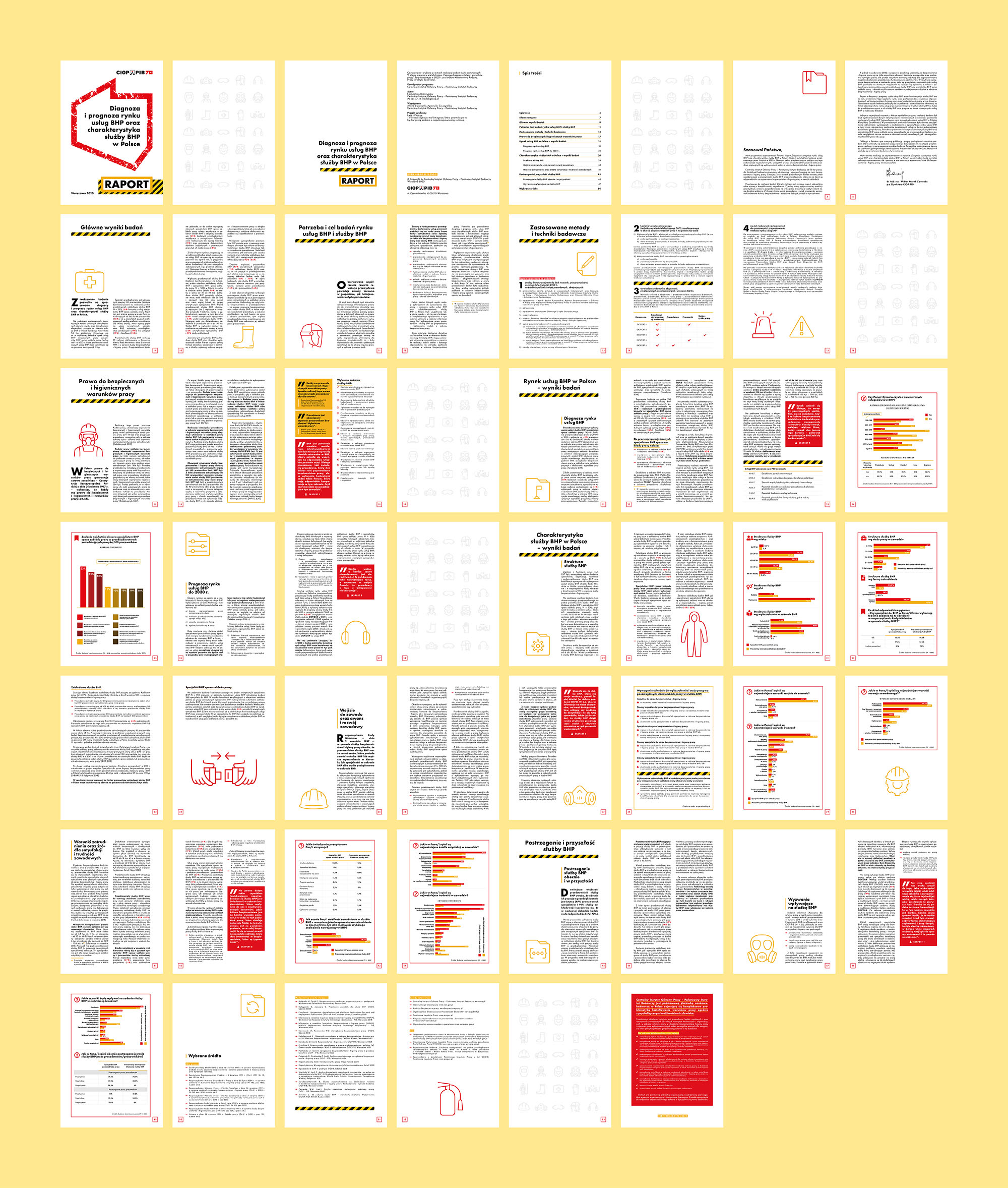 Raport „Diagnoza i prognoza rynku usług BHP oraz charakterystyka służby BHP w Polsce” z 2020 roku, opracowany przez CIOP-PIB, analizuje rynek usług BHP w Polsce. Dokument przedstawia obecną sytuację i prognozy rozwoju do 2030 roku. Zawiera dane statystyczne o strukturze zatrudnienia, warunkach pracy i poziomie satysfakcji pracowników służby BHP. Omawia także zadania zlecane specjalistom spoza zakładu pracy. Raport uwzględnia wpływ pandemii oraz zawiera rekomendacje dla branży, dostosowane do przyszłych wyzwań i potrzeb rynku.