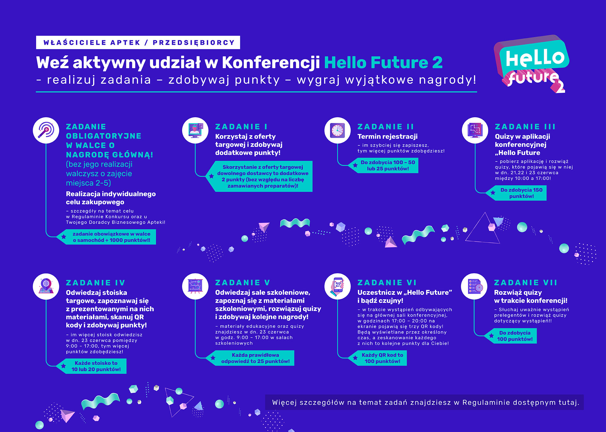 Konferencja „Hello Future” to inicjatywa Polskiej Grupy Farmaceutycznej (PGF) skierowana do przedstawicieli branży farmaceutycznej, w szczególności farmaceutów i właścicieli aptek. Jej celem jest stworzenie forum wymiany wiedzy oraz dyskusji na temat przyszłości sektora farmaceutycznego, wyzwań stojących przed nim oraz potencjalnych kierunków rozwoju.