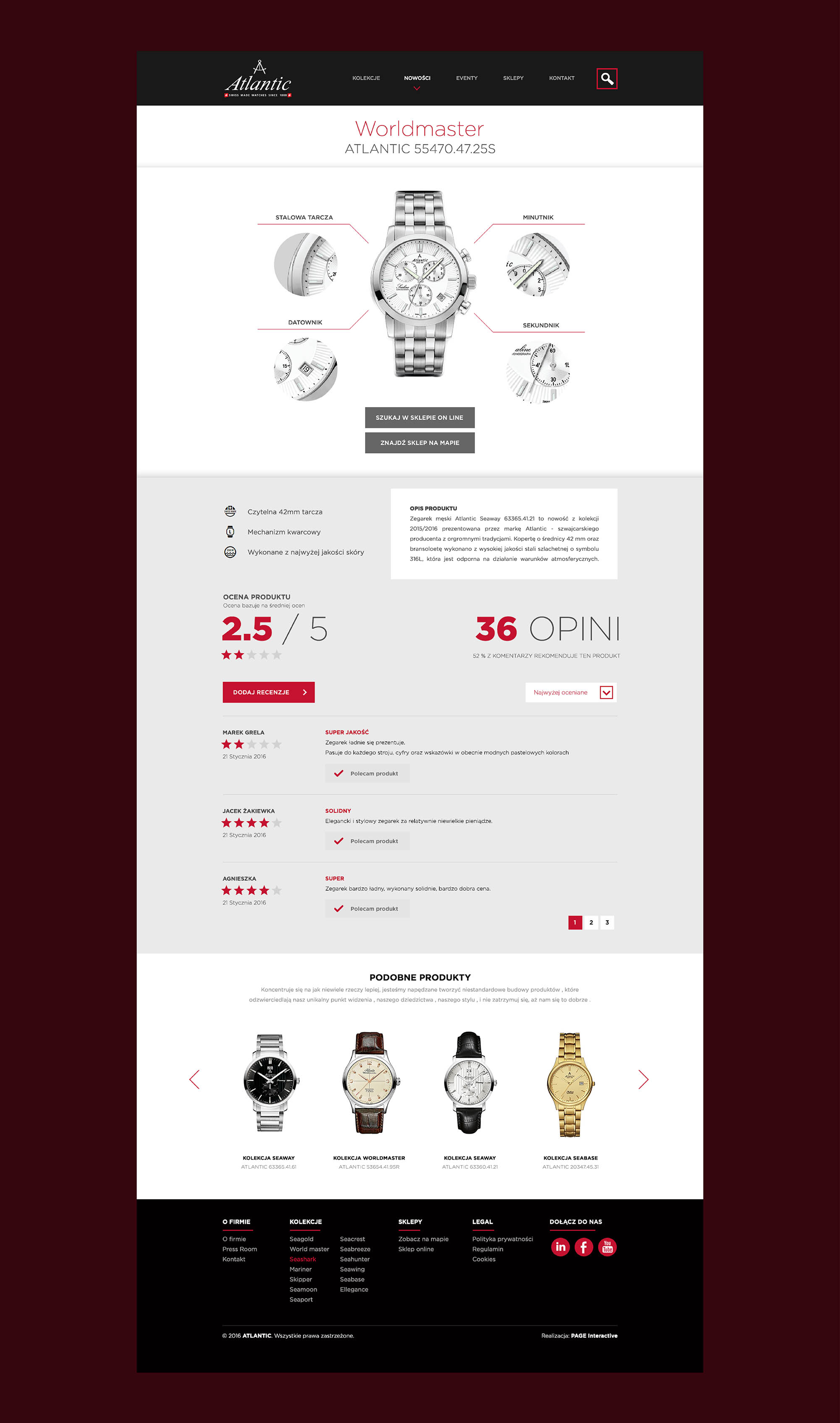 Atlantic to szwajcarska marka zegarków znana z ponad 130-letniej tradycji w tworzeniu precyzyjnych czasomierzy. Słynie z eleganckich, klasycznych wzorów oraz wysokiej jakości mechanizmów, co czyni ją cenioną na rynku międzynarodowym. Atlantic oferuje zegarki zarówno dla mężczyzn, jak i kobiet, zachowując szwajcarskie standardy jakości i precyzji. Marka łączy tradycję z nowoczesnym designem, co sprawia, że jej produkty są atrakcyjnym wyborem dla miłośników elegancji i niezawodności.